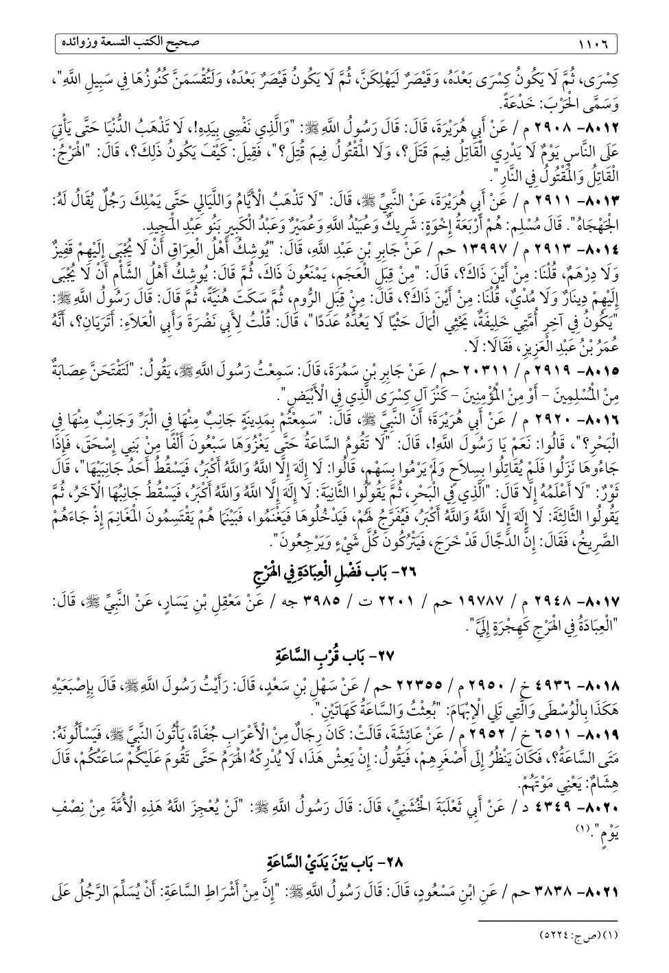 ٢٨ - بَاب بَيْنَ يَدَيْ السَّاعَةِ