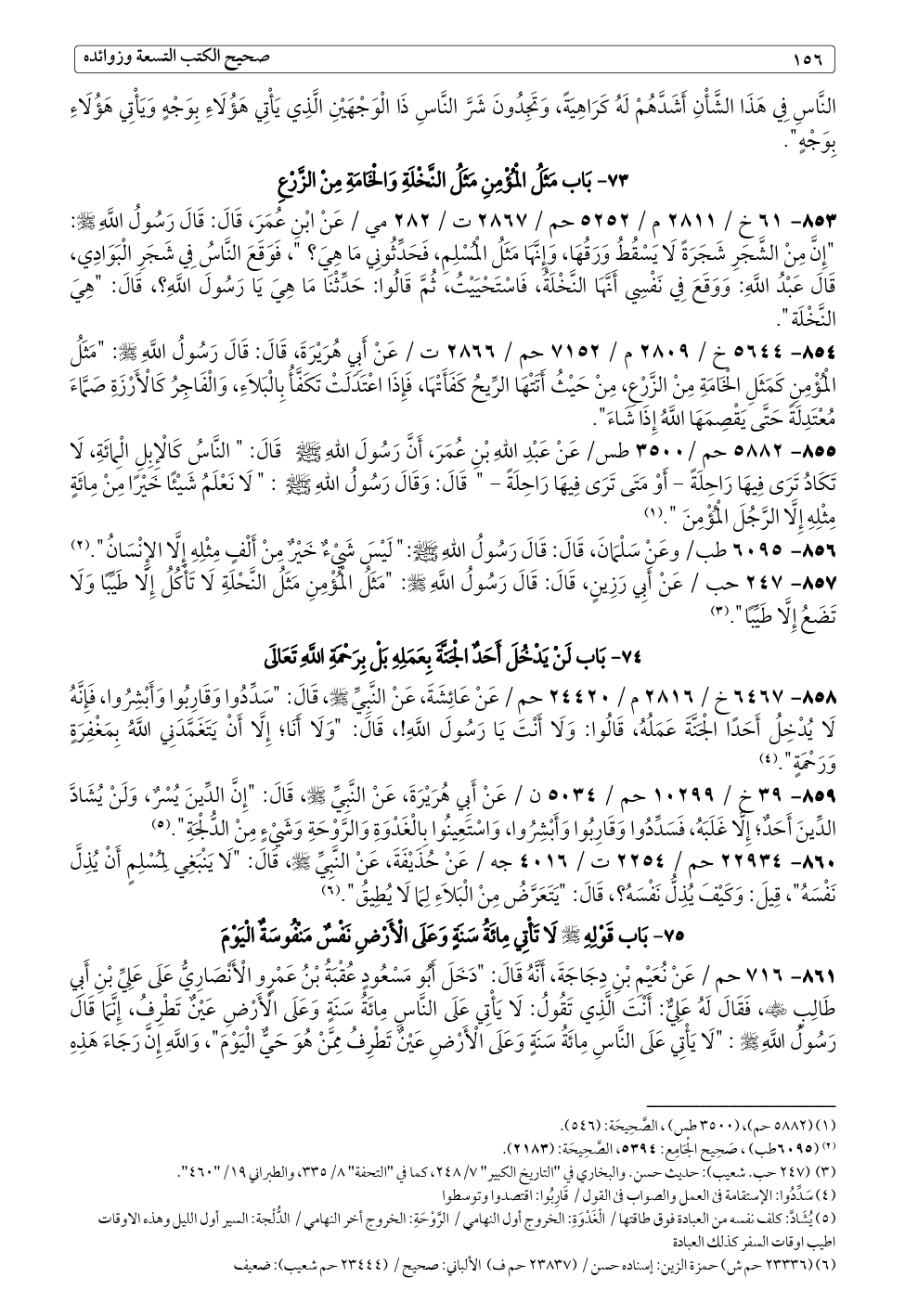 ٧٣ - بَاب مَثَلُ الْمُؤْمِنِ مَثَلُ النَّخْلَةِ وَالْخَامَةِ مِنْ الزَّرْعِ