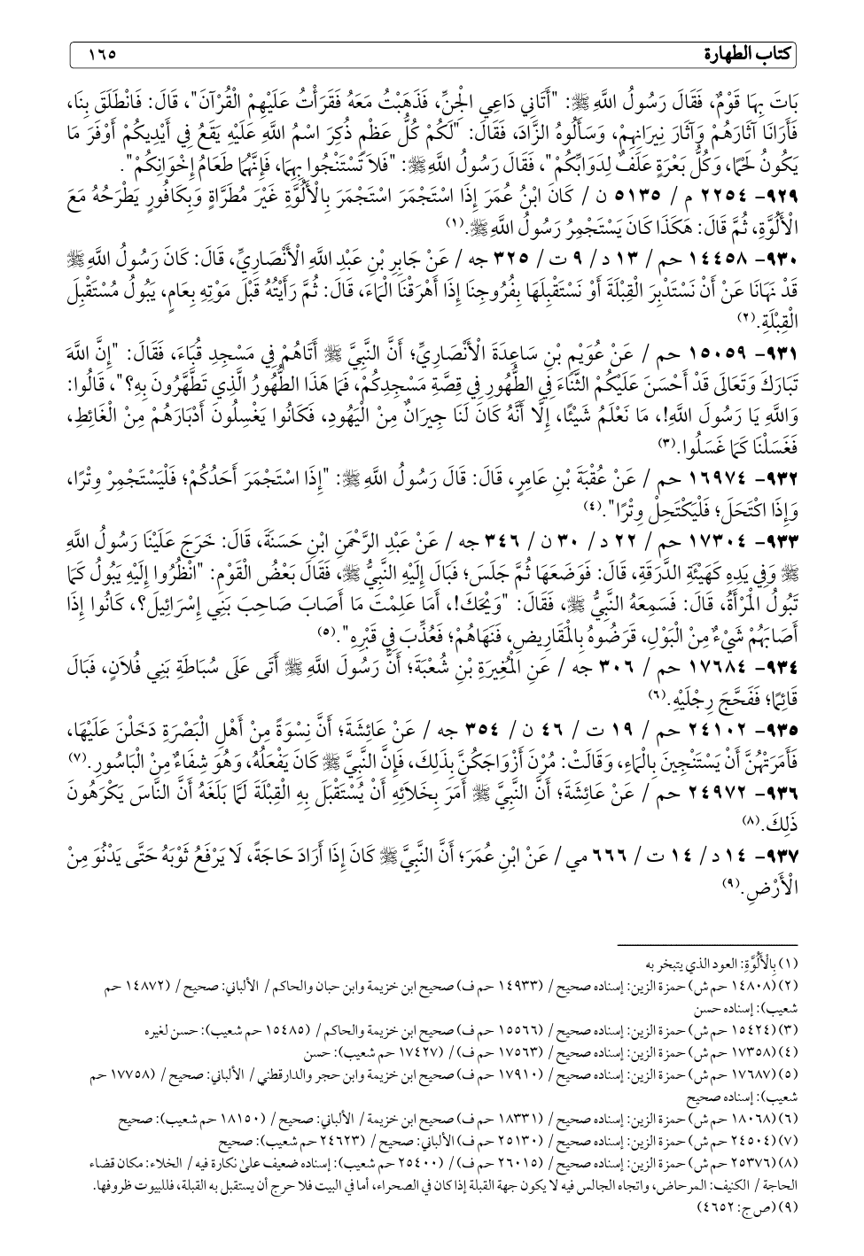 (¬٨) (٢٥٣٧٦ حم ش) حمزة الزين: إسناده صحيح / (٢٦٠١٥ حم ف) / (٢٥٤٠٠ حم شعيب): إسناده ضعيف على نكارة فيه / الخلاء: مكان قضاء الحاجة / الكنيف: المرحاض، واتجاه الجالس فيه لا يكون جهة القبلة إذا كان في الصحراء، أما في البيت فلا حرج أن يستقبل به القبلة، فللبيوت ظروفها.