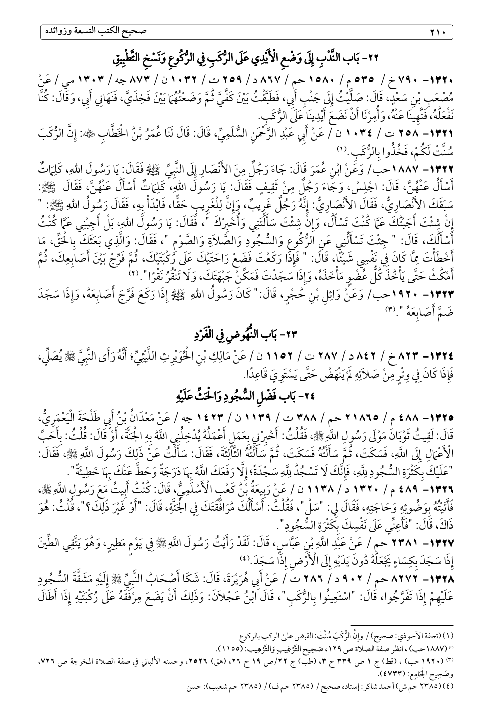 (¬٣) (١٩٢٠ حب)، (قط) ج ١ ص ٣٣٩ ح ٣، (طب) ج ٢٢/ص ١٩ ح ٢٦، (هق) ٢٥٢٦، وحسنه الألباني في صفة الصلاة المخرجة ص ٧٢٦، وصَحِيح الْجَامِع: (٤٧٣٣).