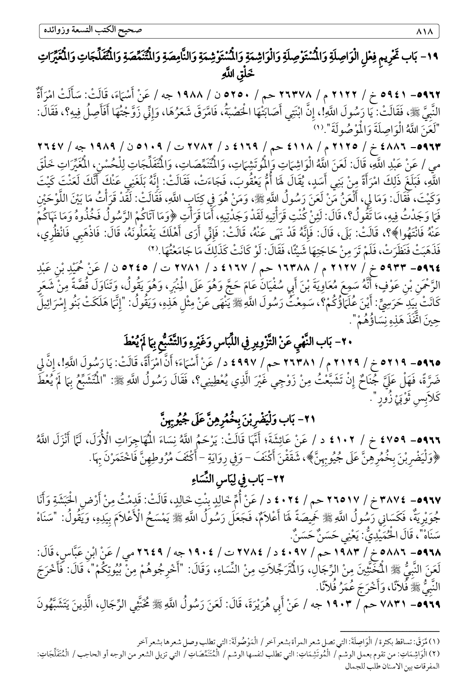 (¬١) مَّرَقَ: تساقط بكثرة / الْوَاصِلَةَ: التي تصل شعر المرأة بشعر آخر / الْمَوْصُولَةَ: التي تطلب وصل شعرها بشعر آخر
