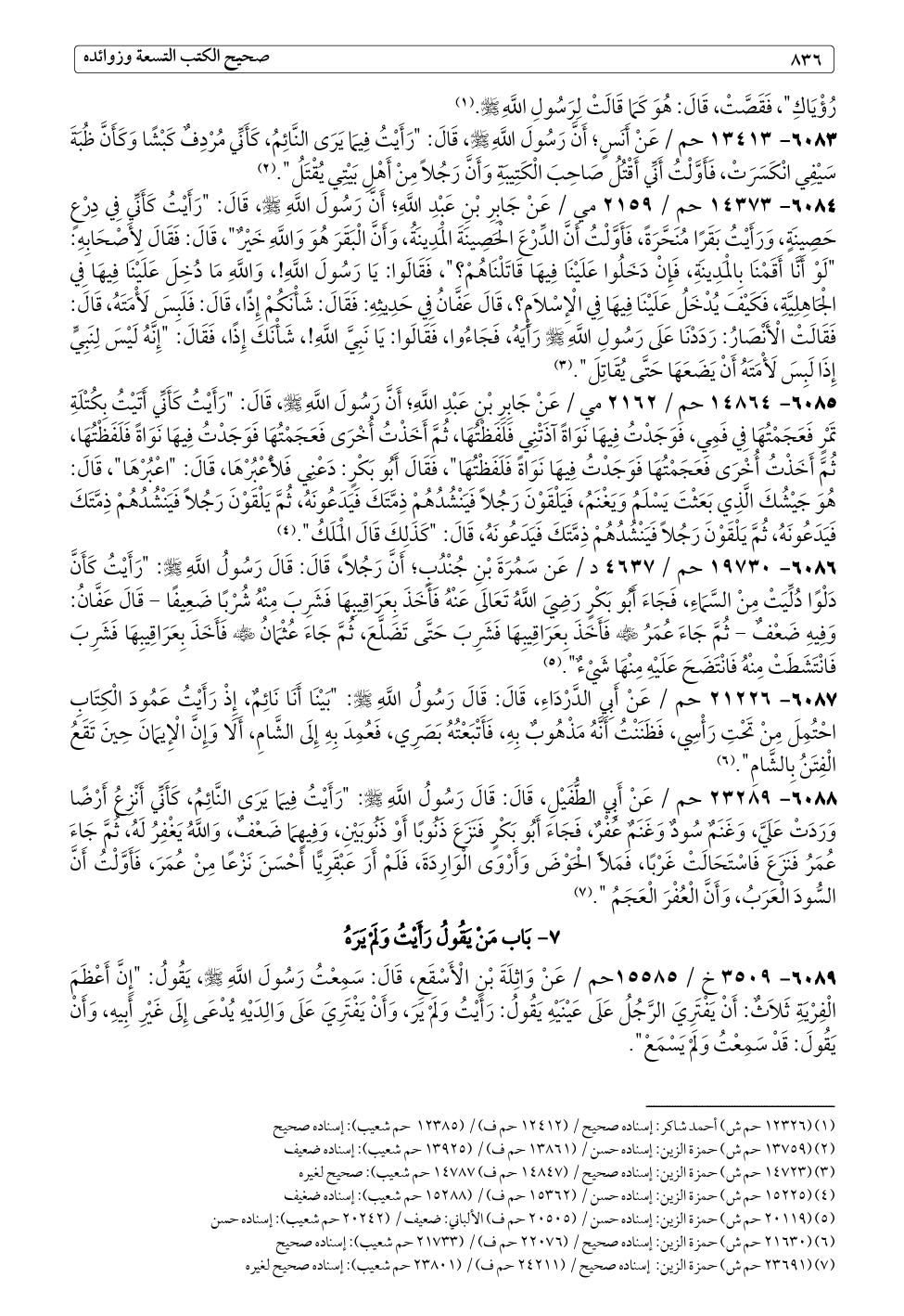 (¬٦) (٢١٦٣٠ حم ش) حمزة الزين: إسناده صحيح / (٢٢٠٧٦ حم ف) / (٢١٧٣٣ حم شعيب): إسناده صحيح