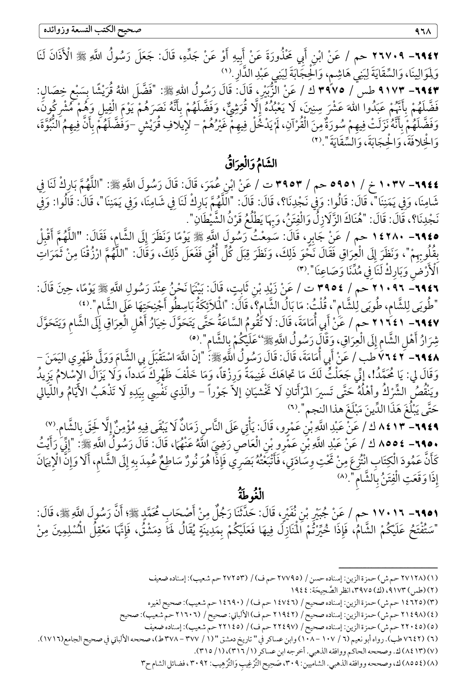 (¬٨) (٨٥٥٤) ك، وصححه ووافقه الذهبي. الشاميين: ٣٠٩، صَحِيح التَّرْغِيبِ وَالتَّرْهِيب: ٣٠٩٢، فضائل الشام ح ٣
