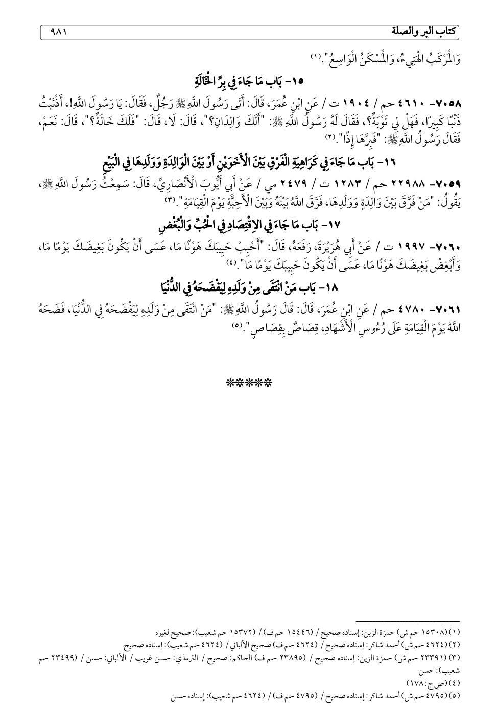 (¬٣) (٢٣٣٩١ حم ش) حمزة الزين: إسناده صحيح / (٢٣٨٩٥ حم ف) الحاكم: صحيح / الترمذي: حسن غريب / الألباني: حسن / (٢٣٤٩٩ حم شعيب): حسن