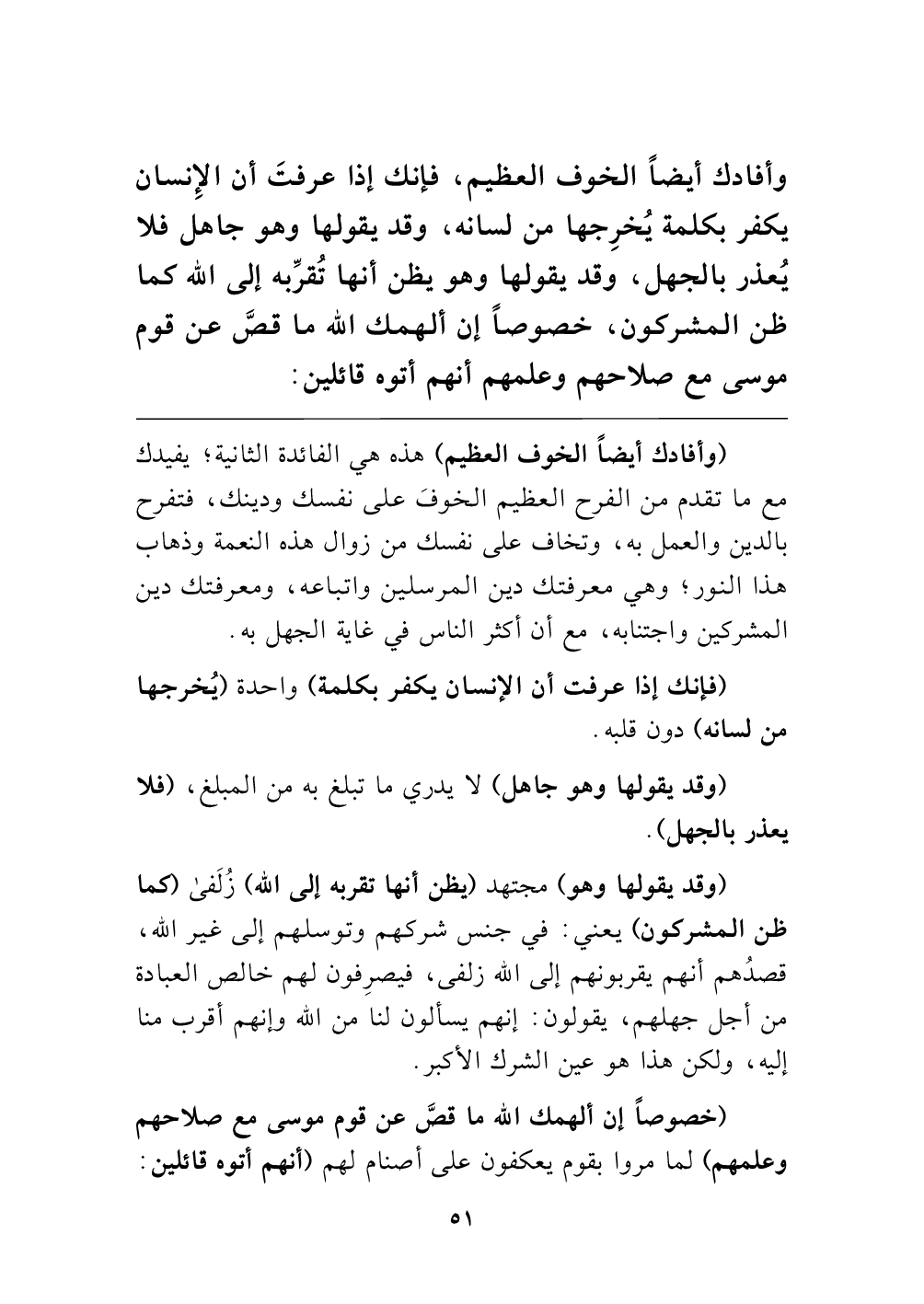 حقيقة دين المرسلين عند ورود الشبهة، ويعلم من هو أولى بدين المرسلين من دين المشركين، وبيَّن أن مشركي زمانه هم أتباع دين المشركين1.