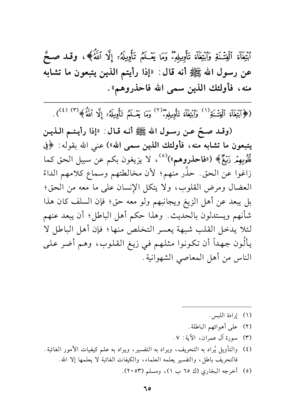 (فقل) للمشبِّهِ الشبهةَ السابقة (عرفت أن الله كفَّر من قصد الأصنام وكفر أيضًا من قصد الصالحين) 2 بل لابد أن ينضم إلى ذلك تكفيرُهم واعتقاد ذلك، فمن لم يكفرهم دليل على أنه لا يرى عملهم كفراً (وقاتلهم رسول الله صلى الله عليه وسلم ولم يفرق بينهم) بل جعل