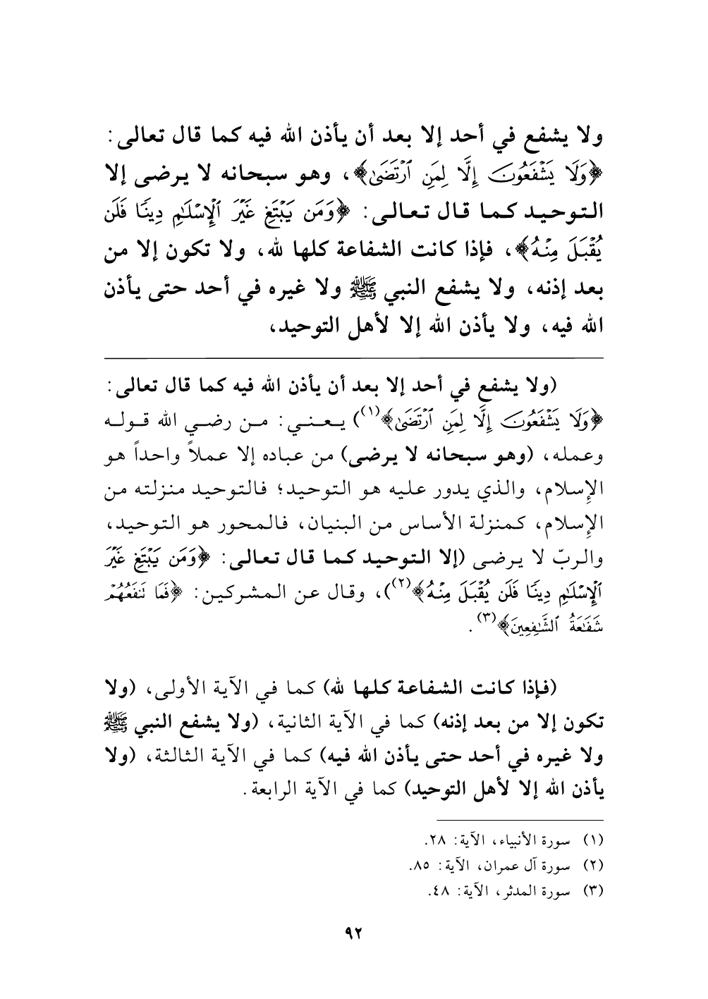 فإذا كان الله قد صرح في كتابه أن مَن آمن ببعض وكفر ببعض فهو الكافر حقاً زالت هذه الشبهة، وهذه هي التي ذكرها بعض أهل الأحساء في كتابه الذي أرسله إلينا.