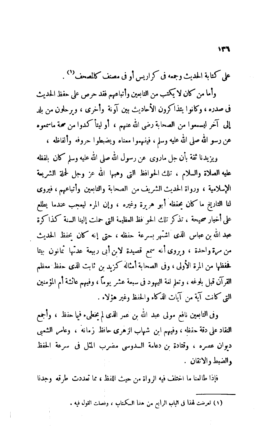 وأما من كان لا يكتب من التابعين وأتباعهم فقد حرص على حفظ الحديث في صدره، وكانوا يتذاكرون الأحاديث بين آونة وأخرى، ويرحلون من بلد إلى آخر ليسمعوا من الصحابة - رَضِيَ اللهُ عَنْهُمْ -، أو ليتأكدوا من صحة ما سمعوه عن [رَسُولِ] اللهِ - صَلََّى اللهُ عَلَيْهِ وَسَلَّمَ -، فيفهموا معناه ويضبطوا حروفه وألفاظه.