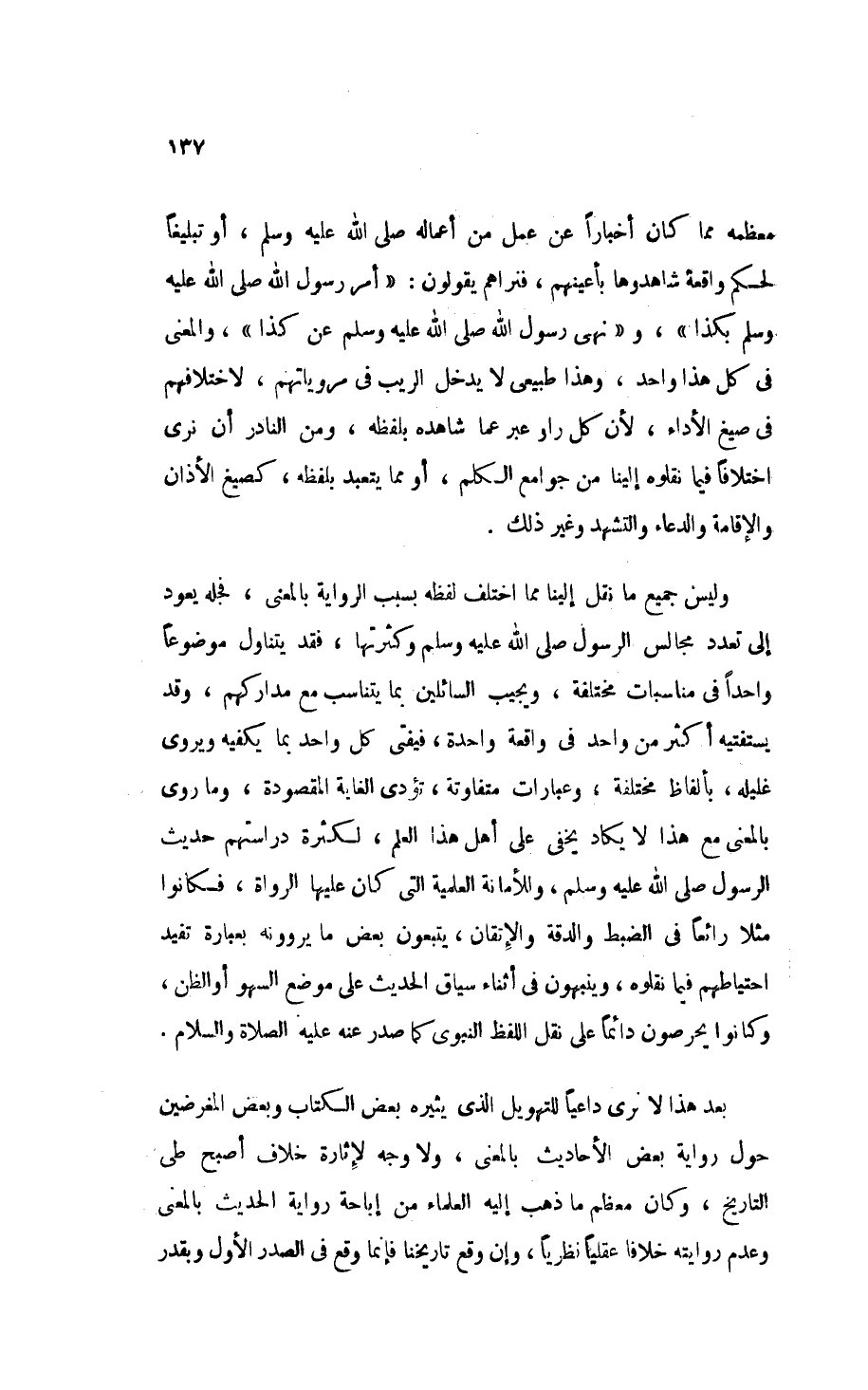 بعد هذا لا نرى داعيًا للتهويل الذي يثيره بعض الكُتَّابِ وبعض المغرضين حول رواية بعض الأحاديث بالمعنى، ولا وجه لإثارة خلاف أصبح طَيَّ التاريخ، وكان معظم ما ذهب إليه العلماء من إباحة رواية الحديث بالمعنى وعدم روايته خِلاَفًا عَقْلِيًّا نَظَرِيًّا، وإن وقع تَارِيخِيًّا فإنما وقع في الصدر الأول وبقدر