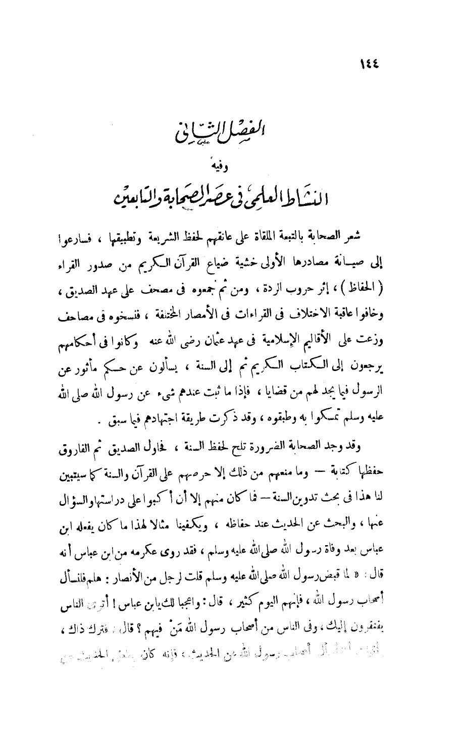 المَبْحَثُ الأَوَّلُ: النَّشَاطُ العِلْمِيُّ فِي عَصْرِ الصَّحَابَةِ وَالتَّابِعِينَ: