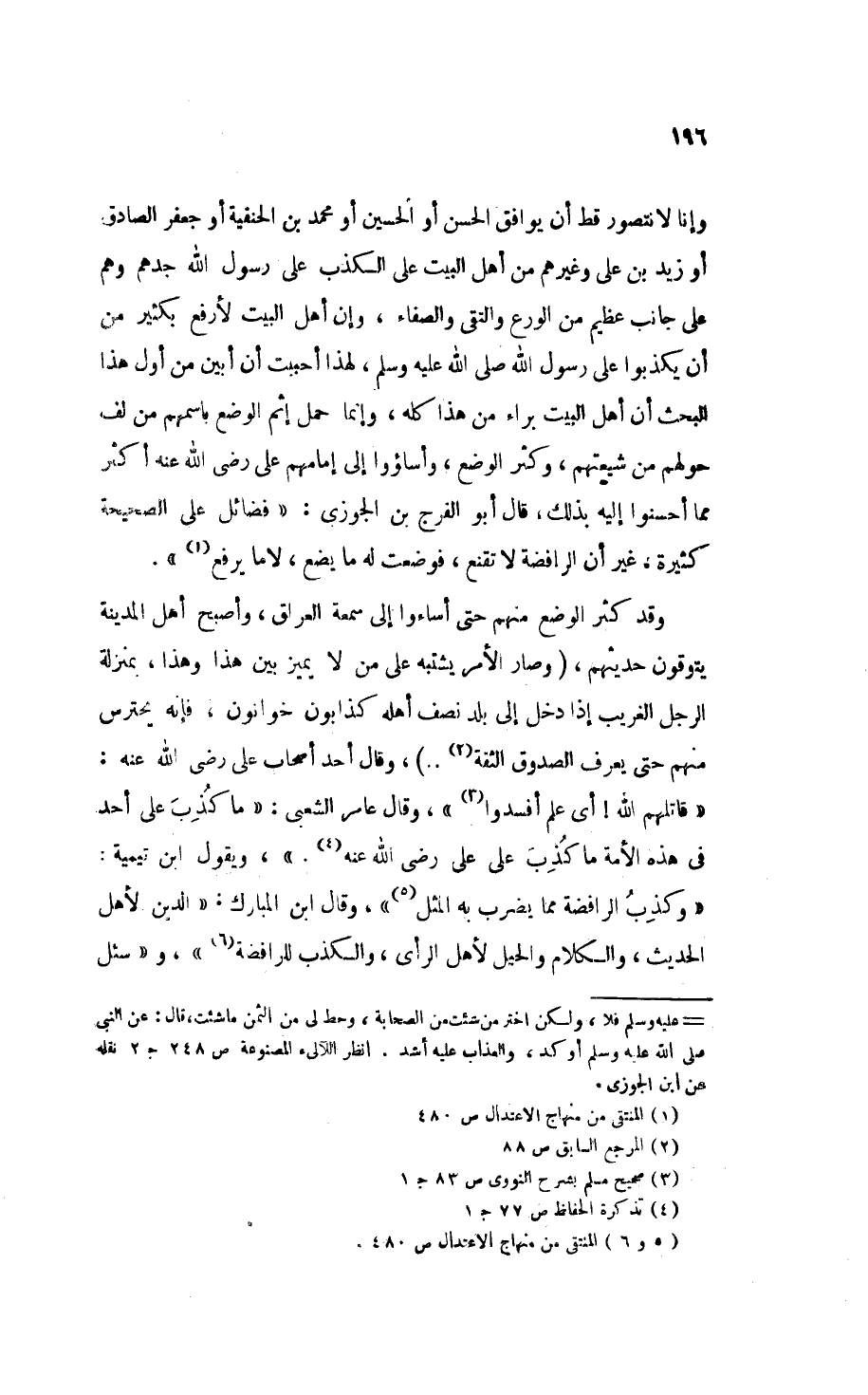وإنا لا نتصور قط أن يوافق الحسن أو الحسين أو محمد بن الحنفية أو جعفر الصادق أو زيد بن علي وغيرهم من أهل البيت على الكذب على رسول الله جدهم وهم على جانب عظيم من الورع والتقى والصفاء، وإن أهل البيت لأرفع بكثير من أن يكذبوا على رسول الله - صَلََّى اللهُ عَلَيْهِ وَسَلَّمَ - لهذا أحببت أن أُبَيِّنَ من أول هذا البحث أن أهل البيت براء من هذا كله، وإنما حمل إثم الوضع باسمهم من لف حولهم من شيعتهم، وكثر الوضع، وأساؤوا إلى إمامهم عَلِيٌّ - رَضِيَ اللهُ عَنْهُ - أكثر مما أحسنوا إليه بذلك، قال أبو الفرج بن الجوزي: «فَضَائِلُ عَلِيٍّ الصَّحِيحَةُ كَثِيرَةٌ، غَيْرَ أَنَّ الرَّافِضَةَ لاَ تَقْنَعُ، فَوَضَعَتْ لَهُ مَا يَضَعُ، لاَ مَا يَرْفَعُ» (¬1).