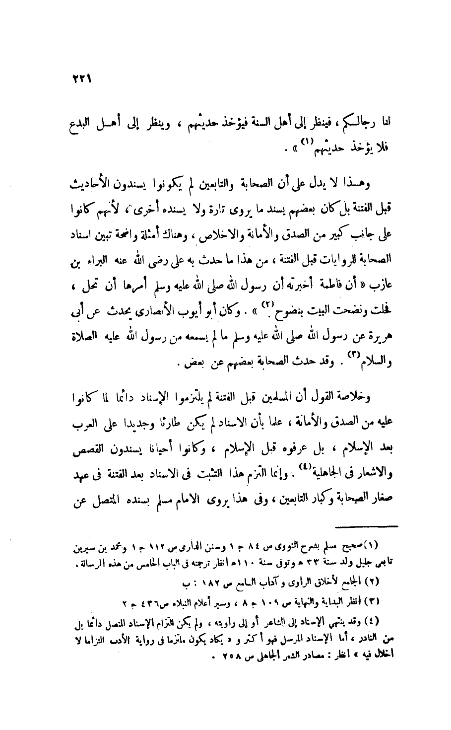 (¬1) " صحيح مسلم بشرح النووي ": ص 84 جـ 1. و" سنن الدارمي ": ص 112 جـ 1. ومحمد بن سيرين تابعي جليل ولد سَنَةَ 33 هـ وتوفي سَنَةَ 110 هـ، انظر ترجمته في الباب الخامس من هذه الرسالة.