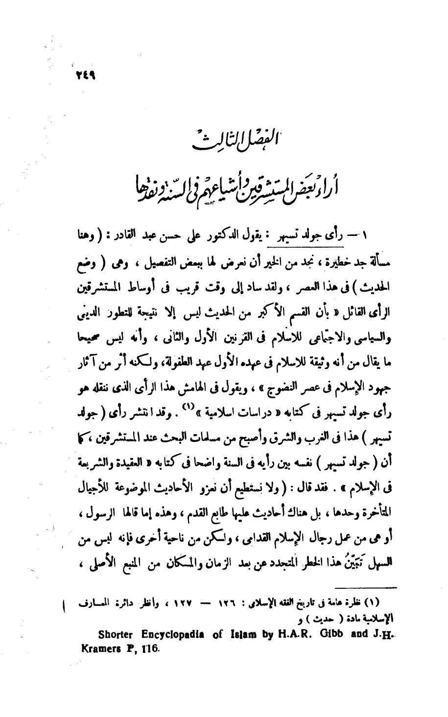 الفَصْلُ الثَّالِثُ: آرَاءُ بَعْضِ المُسْتَشْرِقِينَ وَأَشْيَاعَهُمْ فِي السُنَّةِ وَنَقْدِهَا:
