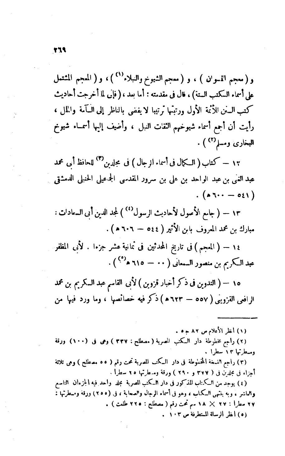 14 - " المعجم " في تاريخ المحدثين في ثمانية عشر جزءًا. لأبي المظفر عبد الكريم بن منصور السمعاني (00 - 615 هـ) (¬5).