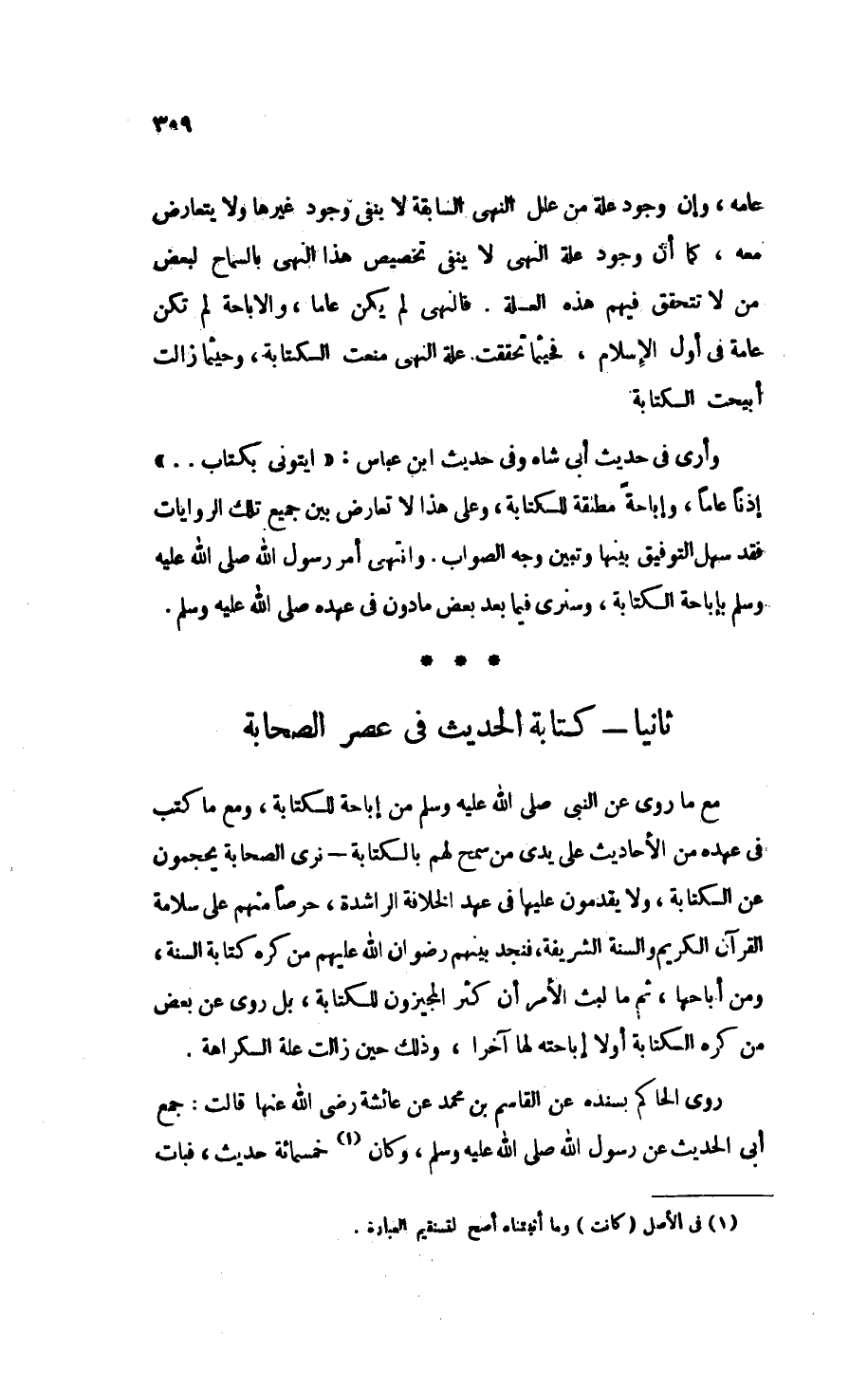 ثَانِيًا - كِتَابَةُ الحَدِيثِ فِي عَصْرِ الصَّحَابَةِ:
