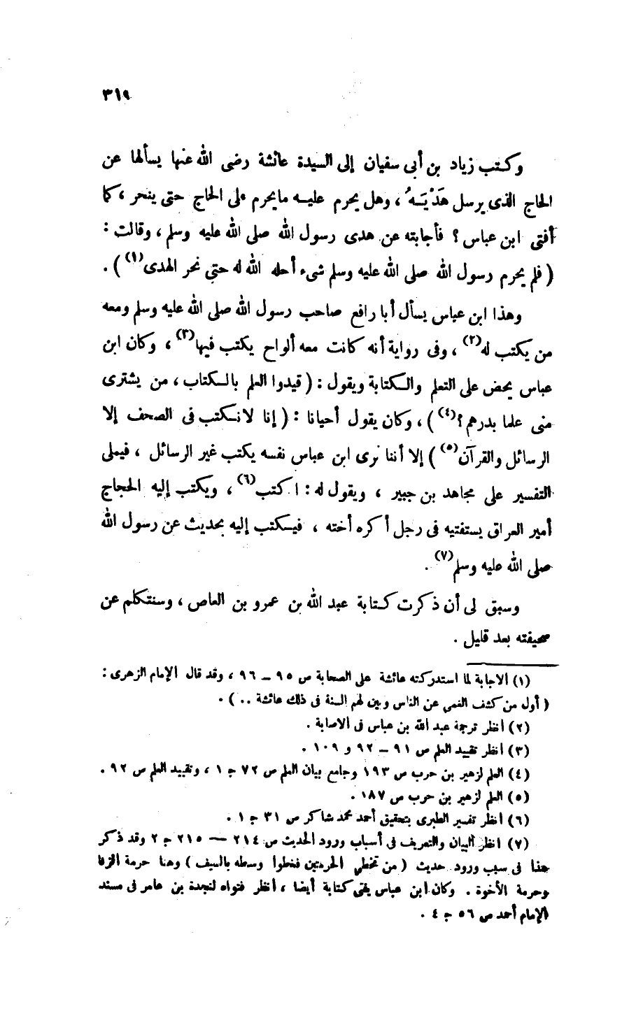 (¬7) انظر " البيان والتعريف في أسباب ورود الحديث ": ص 214، 215 جـ 2، وقد ذكر هذا في سبب ورود حديث «مَنْ تَخَطَّى الحُرْمَتَيْنِ فَخُطُّوا وَسَطَهُ بِالسَّيْفِ» وهنا حرمة الزنا وحرمة الأخوة. وكان ابن عباس يفتي كتابة أَيْضًا، انظر فتواه لنجدة بن عامر في " مسند الإمام أحمد ": ص 56 جـ 4.