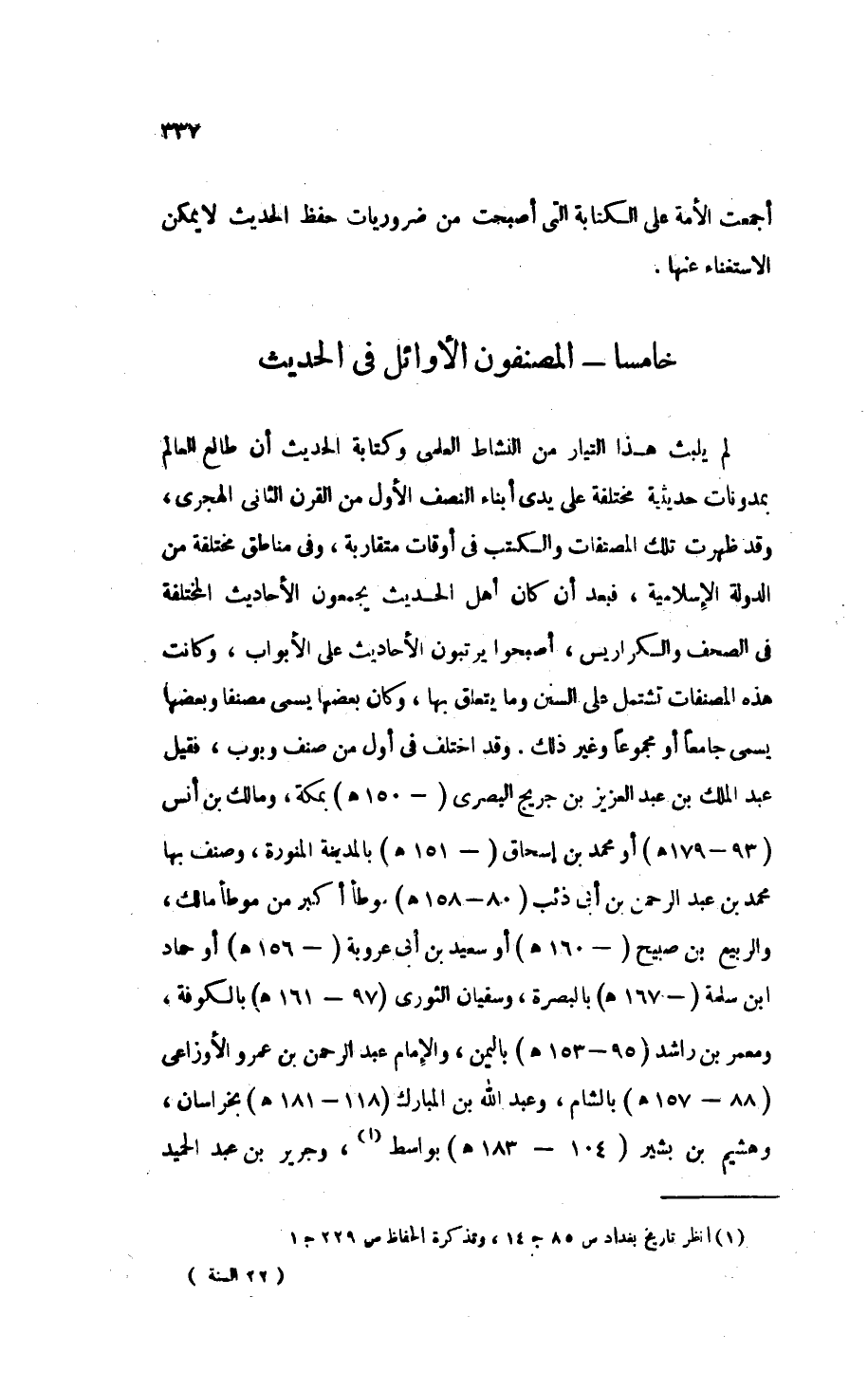 خَامِسًا - المُصَنِّفُونَ الأَوَائِلُ فِي الحَدِيثِ: