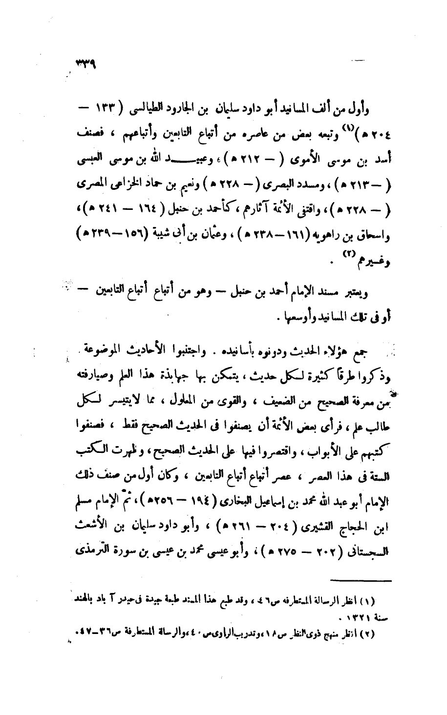 (¬1) انظر " الرسالة المستطرفة ": ص 46، وقد طبع هذا " المسند " طبعة جيدة في حيدر آباد بالهند سَنَةَ 1321 هـ.