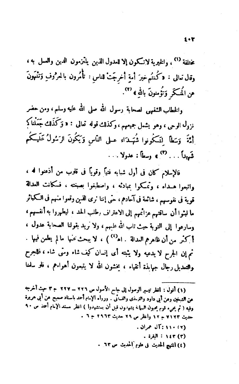 والخطاب الشفهي لصحابة رسول الله - صَلََّى اللهُ عَلَيْهِ وَسَلَّمَ -، ومن حضر نزول الوحي، وهو يشمل جميعهم، وكذلك قوله تعالى: {وَكَذَلِكَ جَعَلْنَاكُمْ أُمَّةً وَسَطًا لِتَكُونُوا شُهَدَاءَ عَلَى النَّاسِ وَيَكُونَ الرَّسُولُ عَلَيْكُمْ شَهِيدًا} (¬3). وَسَطًا: عُدُولاً ...