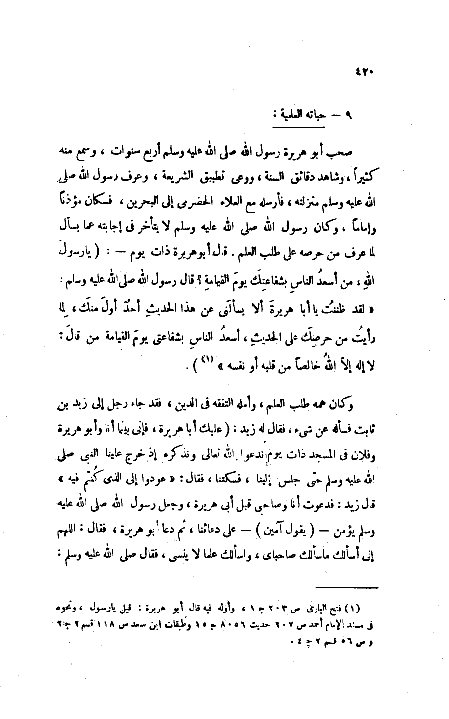 (¬1) " فتح الباري ": ص 203 جـ 1، وأوله فيه قال أبو هريرة: «قِيلَ: يَا رَسُولَ اللَّهِ»، ونحوه في " مسند الإمام أحمد ": ص 207 حديث 8056 جـ 15، و" طبقات ابن سعد ": ص 118 قسم 2 جـ 2 وص: 56 قسم 2 جـ 4.