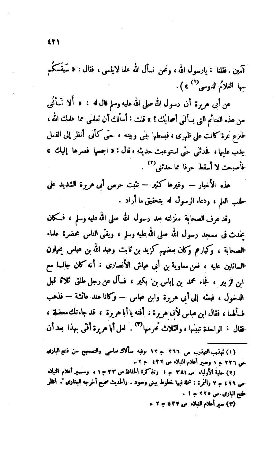 (¬2) " حلية الأولياء ": ص 381 جـ 1، و" تذكرة الحفاظ ": ص 33 جـ 1، و" سير أعلام النبلاء ": ص 429 جـ 2. النمرة: شملة فيها خطوط بيض وسود. والحديث أخرجه البخاري. انظر " فتح الباري ": ص 225 جـ 1.