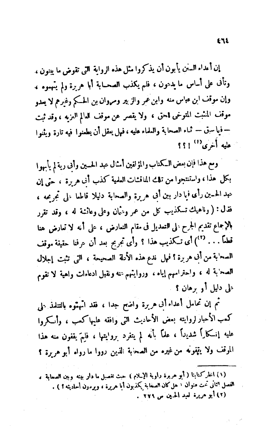(¬1) انظر كتابنا " أبو هريرة راوية الإسلام " حيث تفصيل ما دار بينه وبين الصحابة، الفصل الثاني تحت عنوان (هَلْ كَانَ الصَّحَابَةُ يُكَذِّبُونَ أَبَا هُرَيْرَةَ وَيَرُدُّونَ أَحَادِيثَهُ؟) (*).