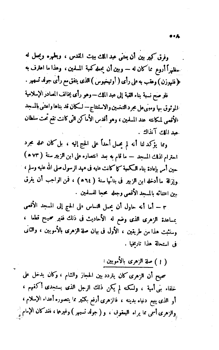 وفرق كبير بين أن يعتني عبد الملك ببيت المقدس، ويطهره ويجعل له مظهرًا أروع مما كان له - وبين أن يجعله كعبة المسلمين، وهذا ما اعترف به (فلهوزن) وعقب به على رأي (أوتيخيوس) الذي يتفق مع رأي جولدتسيهر.