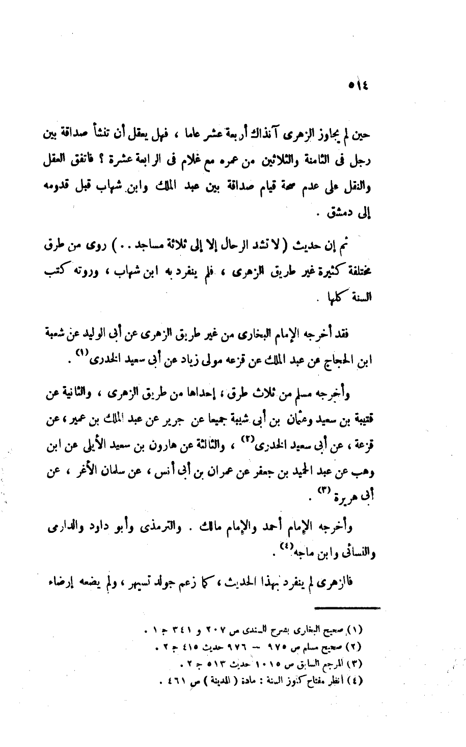 ثم إن حديث «لاَ تُشَدُّ الرِّحَالُ إِلاَّ إِلَى ثَلاَثَةِ مَسَاجِدَ ... » روي من طرق مختلفة كثيرة غير طريق الزهري، فلم ينفرد به ابن شهاب، وَرَوَتْهُ كُتُبُ السُنَّةِ كلها.
