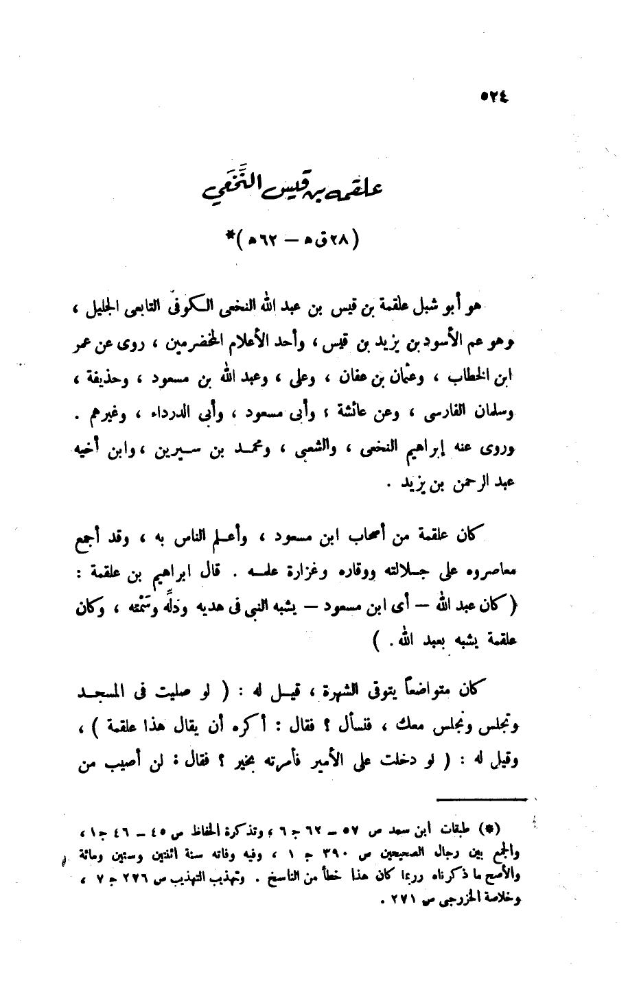 (9) - عَلْقَمَةُ بْنُ قَيْسٍ النَّخَعِيُّ (28 ق هـ - 62 هـ): (*)
