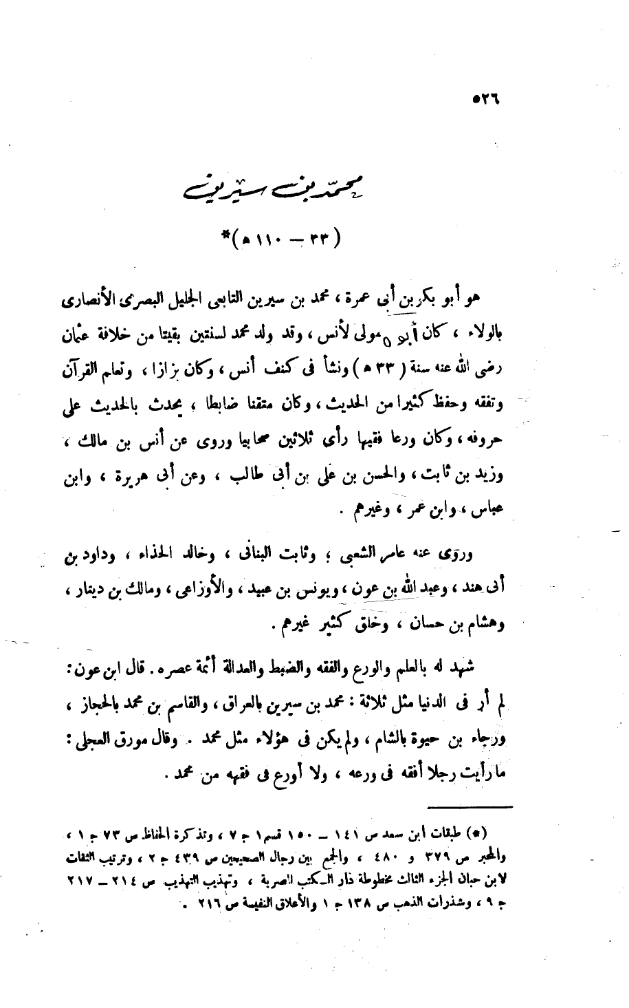 (*) " طبقات ابن سعد ": ص 141 - 150 قسم 1 جـ 7، و" تذكرة الحفاظ ": ص 73 جـ 1، و " المحبر ": ص 279 و 480، و" الجمع بين رجال الصحيحين ": ص 439 جـ 2، و" ترتيب الثقات " لابن حبان: الجزء الثالث مخطوطة دار الكتب المصرية، و" تهذيب التهذيب ": ص 214 - 217 جـ 9، و" شذرات الذهب ": ص 138 جـ 1، و" الأعلاق النفيسة ": ص 216.