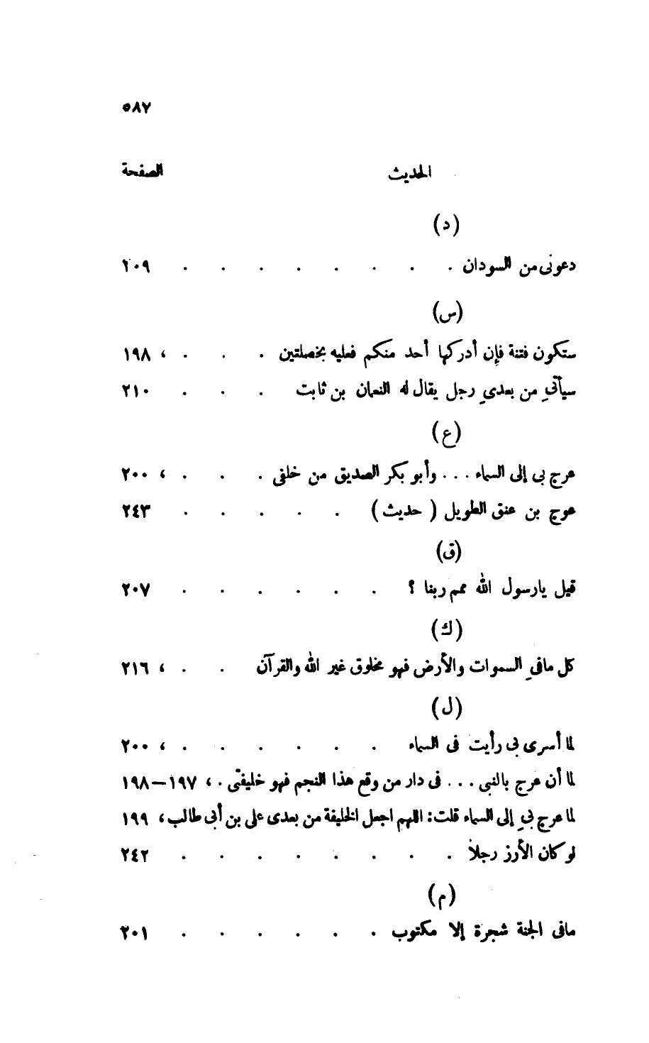 - لَمَّا أُسْرِيَ بِي رَأَيْتُ فِي السَّمَاءِ خَيْلا مَوْقُوفَةً مُسْرَجَةً مُلْجَمَةً ............... 200.