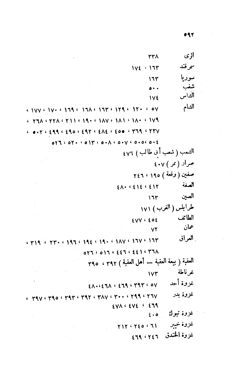 - الشام: 57، 120، 129، 163، 168، 169، 170، 177، 179، 180، 181، 187، 190، 211، 228، 268، [337]، 369، 455، 484، 492، 495، 499، 502، 504، 505، 507، 508، 513، 520، 526.