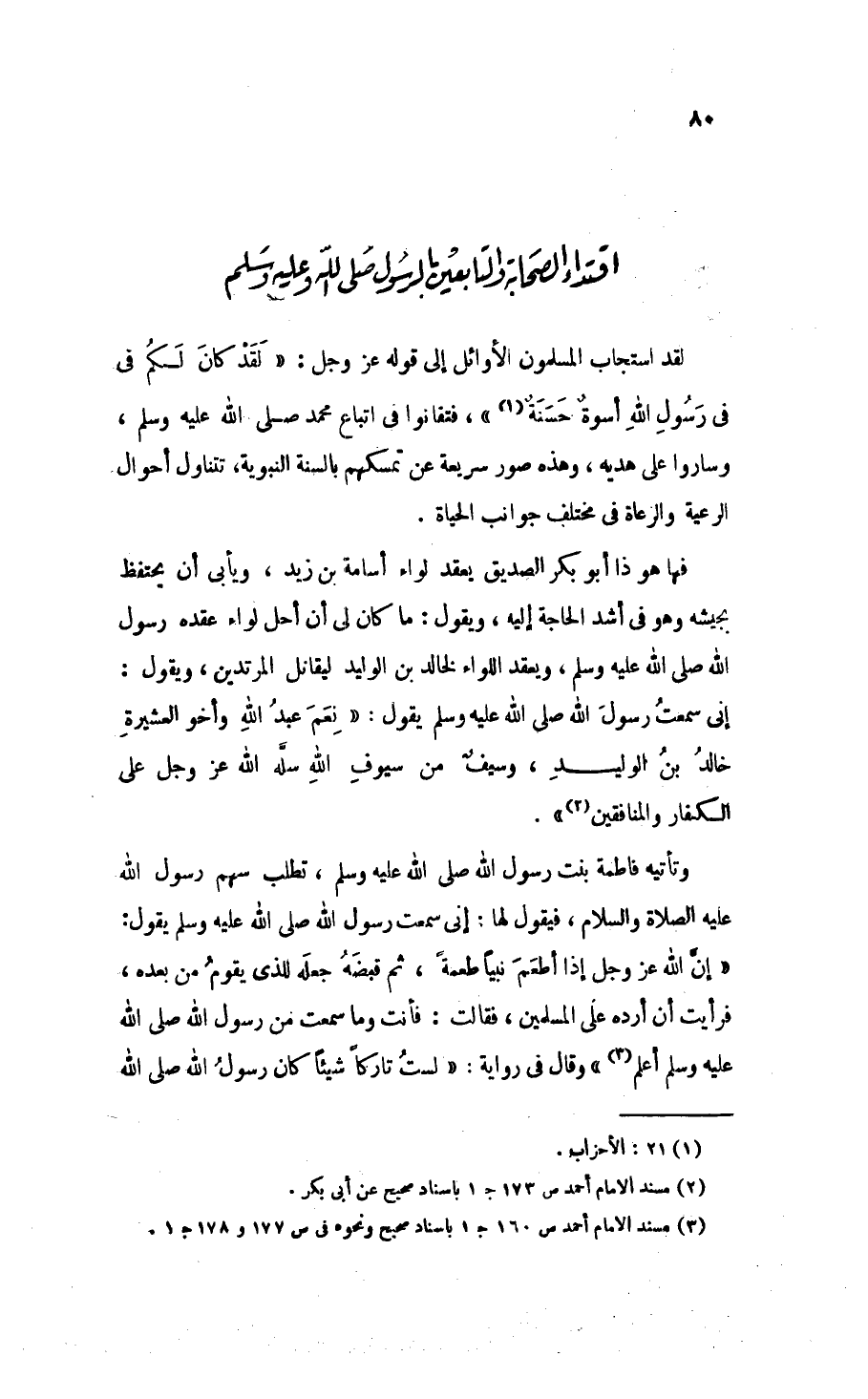 المَبْحَثُ الأَوَّلُ: اقْتِدَاءُ الصَّحَابَةِ وَالتَّابِعِينَ بِالرَّسُولِ - صَلََّى اللهُ عَلَيْهِ وَسَلَّمَ -: