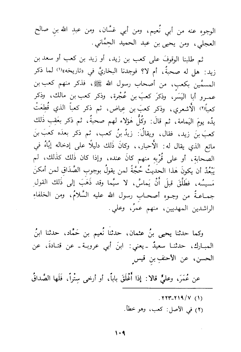وَكَمَا حَدَّثَنَا يَحْيَى بْنُ عُثْمَانَ حَدَّثَنَا نُعَيْمُ بْنُ حَمَّادٍ حَدَّثَنَا ابْنُ الْمُبَارَكِ حَدَّثَنَا سَعِيدٌ يَعْنِي ابْنَ أَبِي عَرُوبَةَ عَنْ قَتَادَةَ عَنِ الْحَسَنِ عَنِ الْأَحْنَفِ بْنِ قَيْسٍ عَنْ عُمَرَ وَعَلِيٍّ قَالَا: " إذَا أَغَلَقَ بَابًا أَوْ أَرْخَى سِتْرًا فَلَهَا الصَّدَاقُ -[110]- كَامِلًا، وَعَلَيْهَا الْعِدَّةُ "