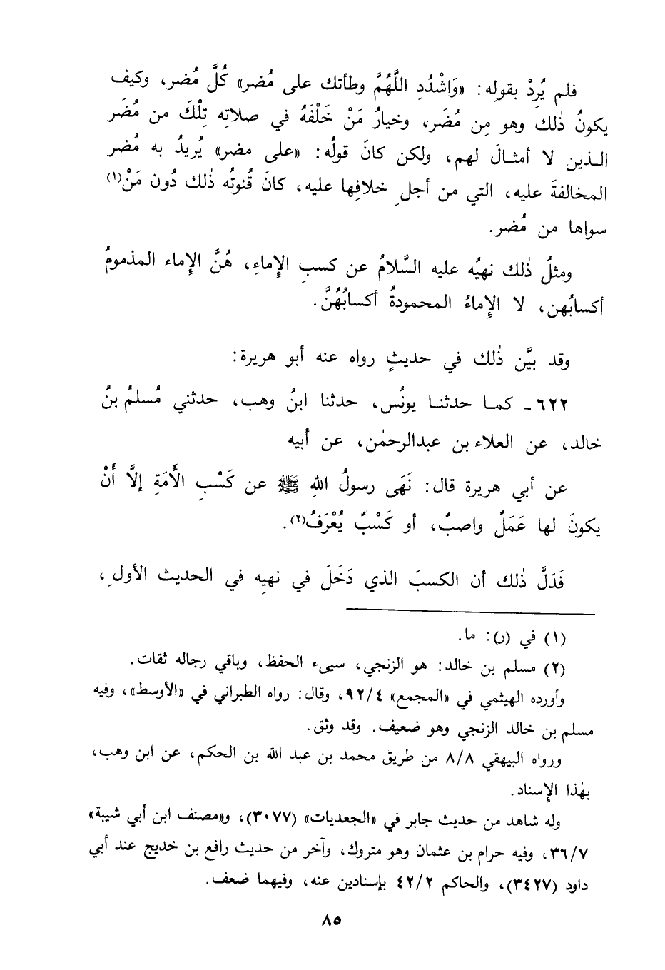 622 - كَمَا حَدَّثَنَا يُونُسُ، حَدَّثَنَا ابْنُ وَهْبٍ، حَدَّثَنِي مُسْلِمُ بْنُ خَالِدٍ، عَنِ الْعَلَاءِ بْنِ عَبْدِ الرَّحْمَنِ، عَنْ أَبِيهِ، عَنْ أَبِي هُرَيْرَةَ قَالَ: " نَهَى رَسُولُ اللهِ صَلَّى اللَّهُ عَلَيْهِ وَسَلَّمَ عَنْ كَسْبِ الْأَمَةِ إلَّا أَنْ يَكُونَ لَهَا عَمَلٌ وَاصِبٌ، أَوْ كَسْبٌ يُعْرَفُ " فَدَلَّ ذَلِكَ أَنَّ الْكَسْبَ الَّذِي دَخَلَ فِي نَهْيِهِ فِي الْحَدِيثِ الْأَوَّلِ -[86]- هُوَ النَّهْي الَّذِي نَهَى عَنْهُ فِي هَذَا الْحَدِيثِ , وَكَذَلِكَ كَانَ مِنْ عُثْمَانَ بْنِ عَفَّانَ فِي خُطْبَتِهِ عَلَى النَّاسِ