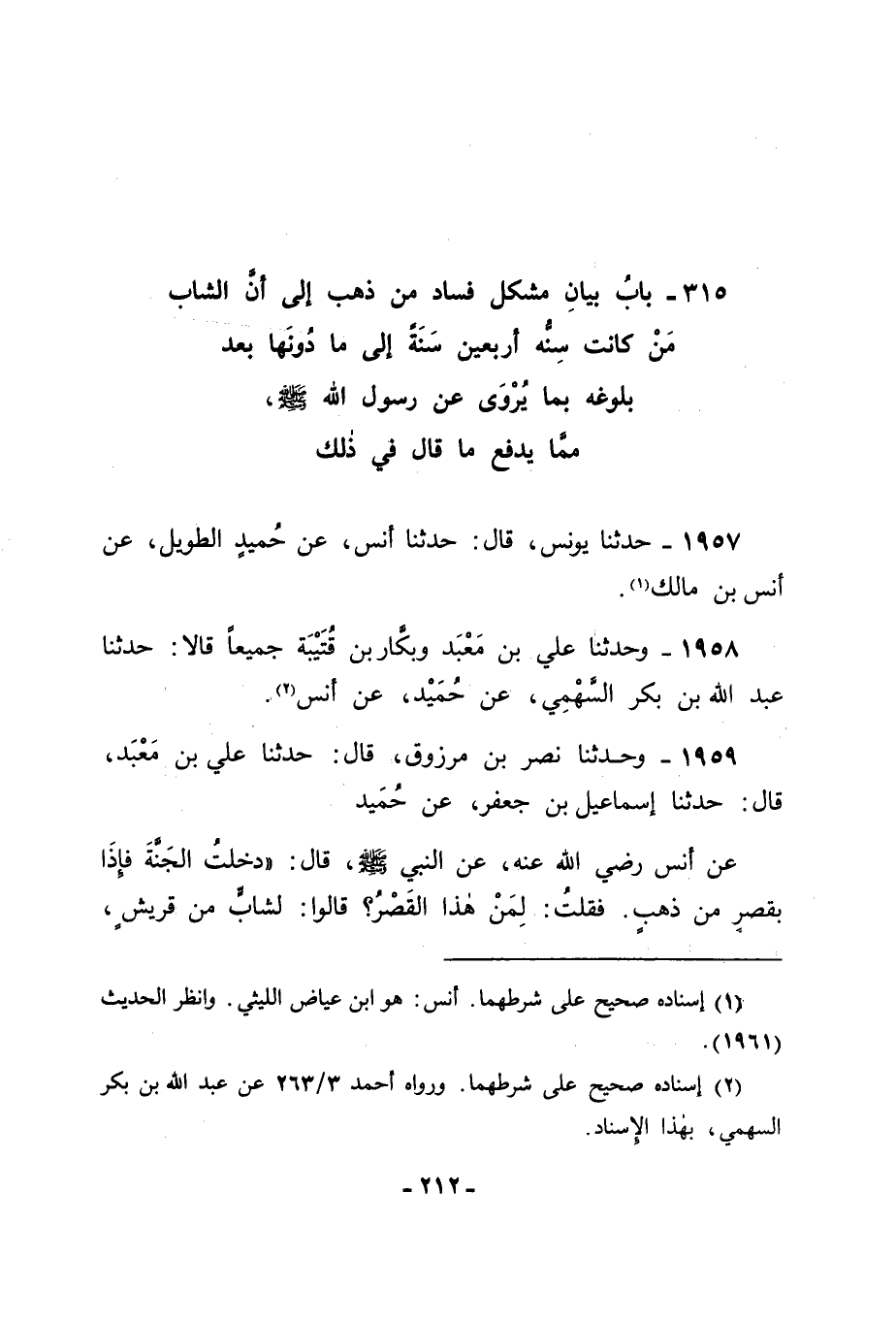 1957 - حَدَّثَنَا يُونُسُ قَالَ: حَدَّثَنَا أَنَسٌ , عَنْ حُمَيْدٍ الطَّوِيلِ , عَنْ أَنَسِ بْنِ مَالِكٍ.