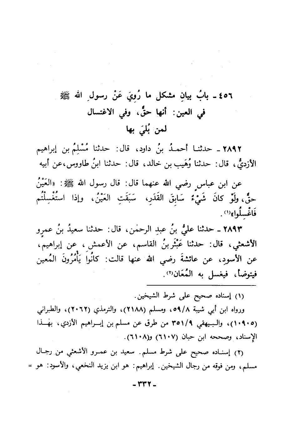 بَابُ بَيَانِ مُشْكِلِ مَا رُوِيَ عَنْ رَسُولِ اللهِ صَلَّى اللَّهُ عَلَيْهِ وَسَلَّمَ فِي الْعَيْنِ أَنَّهَا حَقٌّ وَفِي الِاغْتِسَالِ لِمَنْ بُلِيَ بِهَا