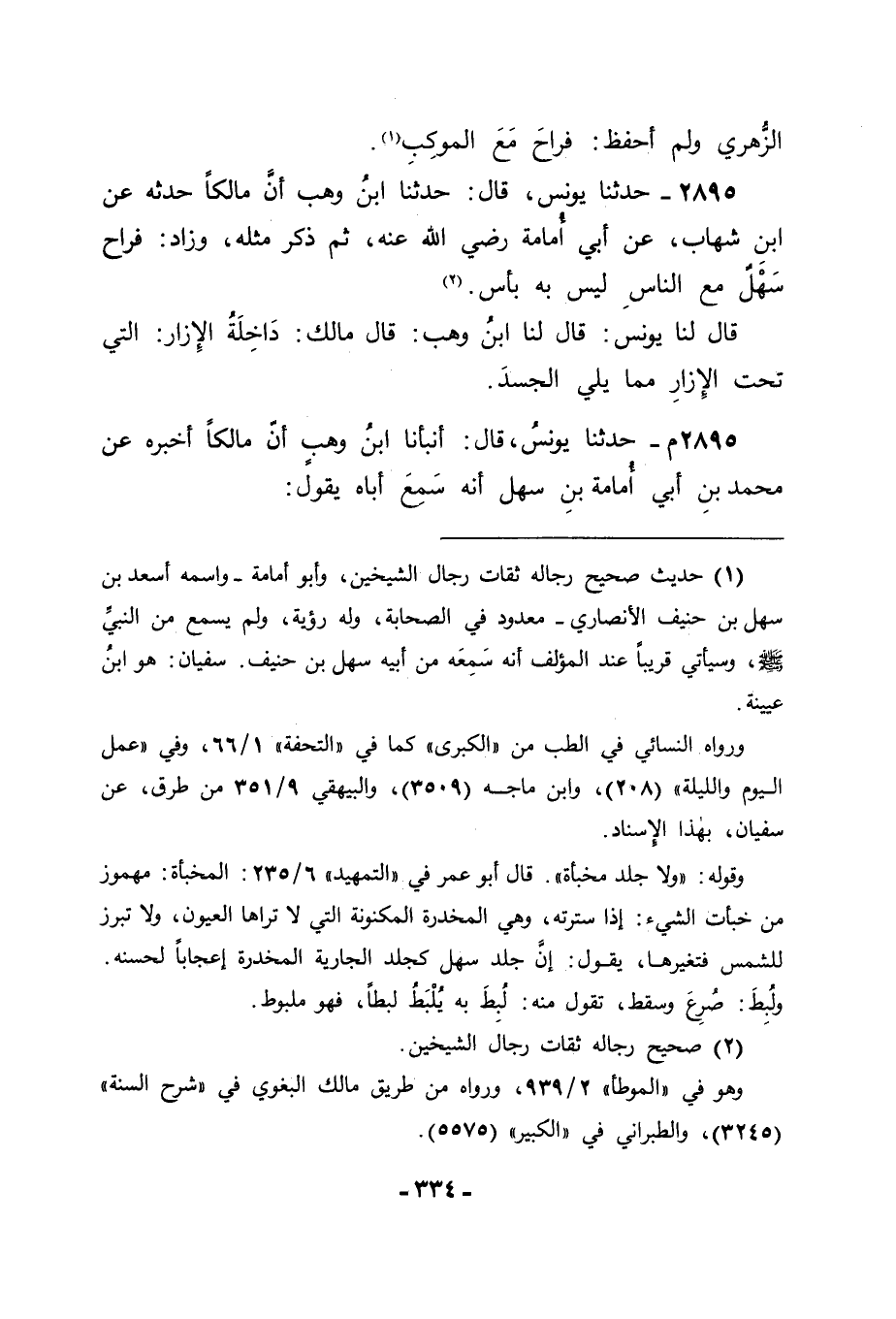 2895 م - حَدَّثَنَا يُونُسُ قَالَ: أَنْبَأَنَا ابْنُ وَهْبٍ، أَنَّ مَالِكًا أَخْبَرَهُ، عَنْ مُحَمَّدِ بْنِ أَبِي أُمَامَةَ بْنِ سَهْلٍ أَنَّهُ سَمِعَ أَبَاهُ يَقُولُ: -[335]- اغْتَسَلَ أَبِي سَهْلُ بْنُ حُنَيْفٍ بِالْخِرَارِ , فَنَزَعَ جُبَّةً كَانَتْ عَلَيْهِ وَعَامِرُ بْنُ رَبِيعَةَ يَنْظُرُ. قَالَ: وَكَانَ سَهْلٌ أَبْيَضَ حَسَنَ الْجِلْدِ , فَقَالَ لَهُ عَامِرُ: مَا رَأَيْتُ كَالْيَوْمِ قَطُّ وَلَا جِلْدَ عَذْرَاءَ , ثُمَّ ذَكَرَ بَقِيَّةَ الْحَدِيثِ