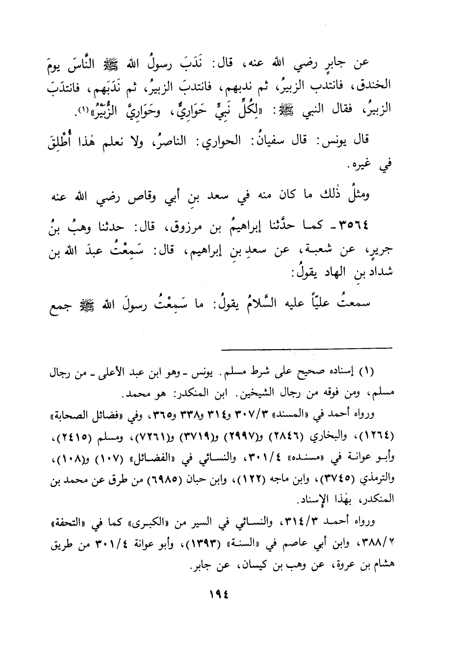 3564 - كَمَا حَدَّثَنَا إِبْرَاهِيمُ بْنُ مَرْزُوقٍ قَالَ: حَدَّثَنَا وَهْبُ بْنُ جَرِيرٍ , عَنْ شُعْبَةَ , عَنْ سَعْدِ بْنِ إِبْرَاهِيمَ قَالَ: سَمِعْتُ عَبْدَ اللهِ بْنَ شَدَّادِ بْنِ الْهَادِ يَقُولُ: سَمِعْتُ عَلِيًّا عَلَيْهِ السَّلَامُ يَقُولُ: " مَا سَمِعْتُ رَسُولَ اللهِ صَلَّى اللَّهُ عَلَيْهِ وَسَلَّمَ جَمَعَ -[195]- لِأَحَدٍ أَبَوَيْهِ غَيْرَ سَعْدِ بْنِ مَالِكٍ , فَإِنَّهُ جَعَلَ يَوْمَ أُحُدٍ يَقُولُ: " ارْمِ فِدَاكَ أَبِي وَأُمِّي " وَمَثَلُ ذَلِكَ مَا كَانَ مِنْهُ فِي سَعِيدِ بْنِ زَيْدٍ فِي إِدْخَالِهِ إِيَّاهُ فِي الْعَشَرَةِ الَّذِينَ شَهِدَ أَنَّهُمْ فِي الْجَنَّةِ , -[196]- وَمَثَلُ ذَلِكَ مَا رُوِيَ فِي عَبْدِ الرَّحْمَنِ بْنِ عَوْفٍ رَضِيَ اللهُ عَنْهُ , عَنْ عُثْمَانَ مِمَّا نُحِيطُ عِلْمًا أَنَّهُ لَمْ يَقُلْهُ إِلَّا تَوْقِيفًا.