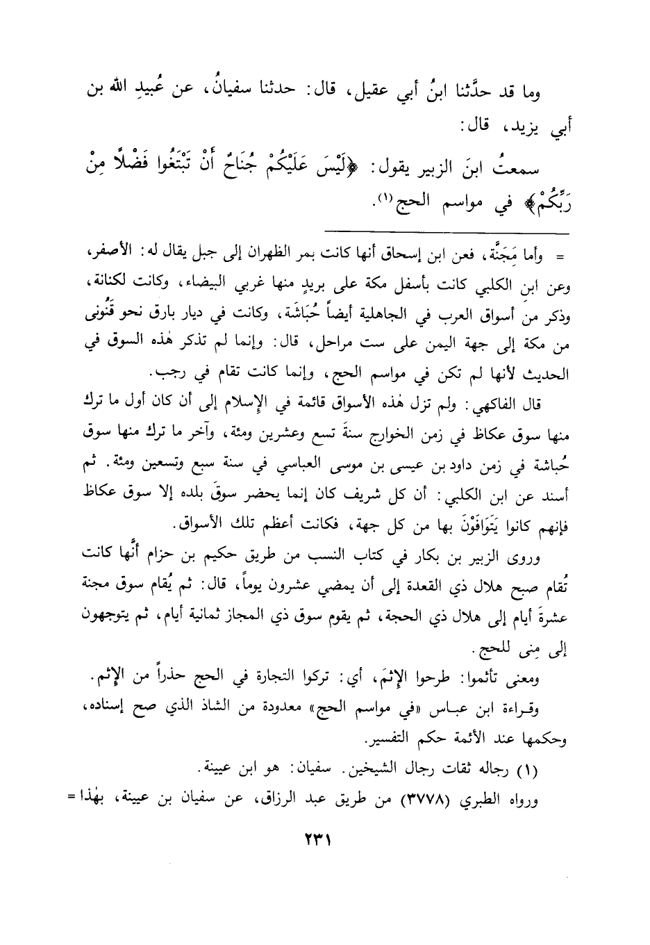 وَمَا قَدْ حَدَّثَنَا ابْنُ أَبِي عَقِيلٍ قَالَ: حَدَّثَنَا سُفْيَانُ , عَنْ عُبَيْدِ اللهِ بْنِ أَبِي يَزِيدَ قَالَ: سَمِعْتُ ابْنَ الزُّبَيْرِ يَقُولُ: {لَيْسَ عَلَيْكُمْ جُنَاحٌ} [البقرة: 198] أَنْ تَبْتَغُوا فَضْلًا مِنْ رَبِّكُمْ فِي مَوَاسِمِ الْحَجِّ " -[232]- هَكَذَا حَدَّثَ بِهِ ابْنُ أَبِي عَقِيلٍ , عَنِ ابْنِ عُيَيْنَةَ , وَقَدْ حَدَّثَ بِهِ غَيْرُهُ عَنْهُ بِخِلَافِ ذَلِكَ.