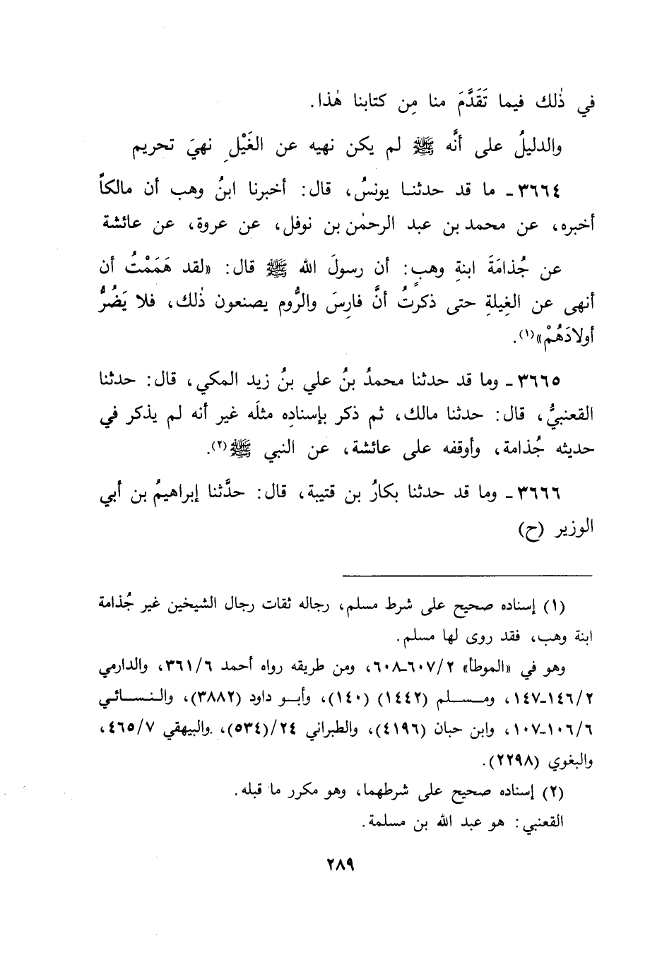 3666 - وَمَا قَدْ حَدَّثَنَا بَكَّارُ بْنُ قُتَيْبَةَ قَالَ: حَدَّثَنَا إِبْرَاهِيمُ بْنُ أَبِي الْوَزِيرِ ح -[290]- وَمَا قَدْ حَدَّثَنَا مُحَمَّدُ بْنُ خُزَيْمَةَ قَالَ: حَدَّثَنَا أَبُو مُسْهِرٍ قَالَا: حَدَّثَنَا مَالِكُ بْنُ أَنَسٍ , عَنْ مُحَمَّدِ بْنِ عَبْدِ الرَّحْمَنِ , عَنْ عُرْوَةَ , عَنْ عَائِشَةَ , عَنْ جُذَامَةَ ابْنَةِ وَهْبٍ عَنْ رَسُولِ اللهِ صَلَّى اللَّهُ عَلَيْهِ وَسَلَّمَ مِثْلَهُ