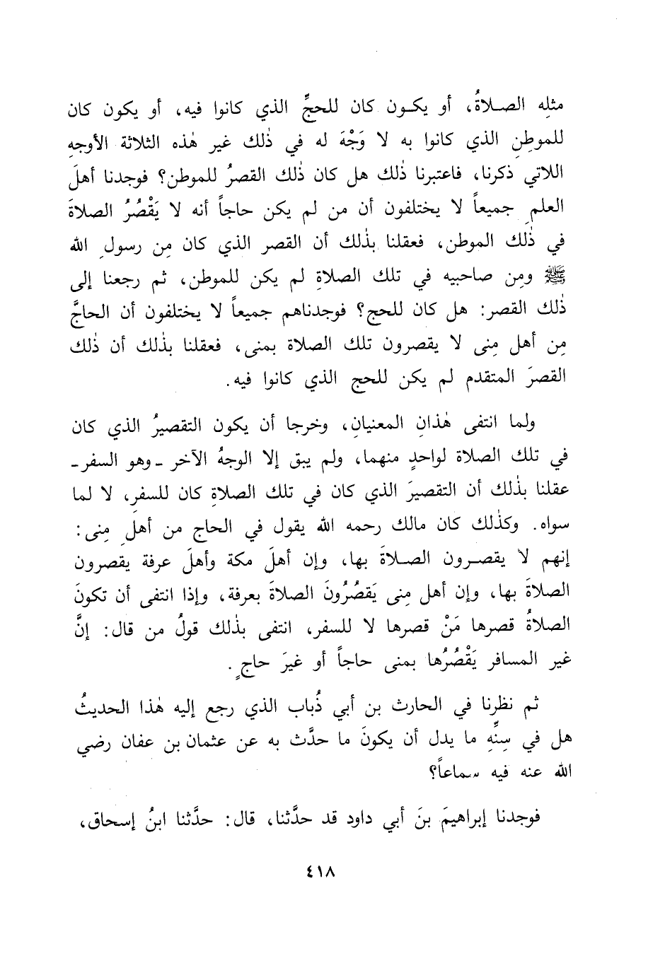 فَوَجَدْنَا إِبْرَاهِيمَ بْنَ أَبِي دَاوُدَ قَدْ حَدَّثَنَا، قَالَ: حَدَّثَنَا ابْنُ إِسْحَاقَ، -[419]- عَنْ يَعْقُوبَ بْنِ عُتْبَةَ، عَنْ يَزِيدَ بْنِ هُرْمُزَ، عَنِ الْحَارِثِ بْنِ أَبِي ذُبَابٍ الدَّوْسِيِّ، قَالَ: " لَمَّا كَانَ عَامُ الرَّمَادَةِ، أَخَذَ عُمَرُ بْنُ الْخَطَّابِ رَضِيَ اللهُ عَنْهُ الصَّدَقَةَ حَتَّى إِذَا أَحْيَا النَّاسُ مِنَ الْعَامِ الْمُقْبِلِ، بَعَثَ إِلَيْهِمْ مُصَدِّقِينَ، وَبَعَثَنِي فِيهِمْ، فَقَالَ: " خُذْ مِنْهُمُ الْعِقَالَيْنِ:، الْعِقَالَ الَّذِي أَخَّرْنَا عَنْهُمْ، وَالْعِقَالَ الَّذِي حَلَّ عَلَيْهِمْ، ثُمَّ اقْسِمْ عَلَيْهِمْ أَحَدَ الْعِقَالَيْنِ، ثُمَّ احْدُرْ لِيَ الْآخَرَ، قَالَ: فَعَقَلْتُ " فَعَقَلْنَا بِذَلِكَ أَنَّ فِي سِنِّهِ فَوْقَ مَا طَلَبْنَا فِيهَا؛ لِأَنَّهُ إِذَا كَانَ مِنْ وُلَاةِ عُمَرَ كَانَ فِي وَقْتِ عُثْمَانَ فَوْقَ كَثِيرٍ مِمَّنْ حَدَّثَ عَنْ عُثْمَانَ فِي الْأَسْنَانِ، وَاللهَ نَسْأَلُهُ التَّوْفِيقَ
