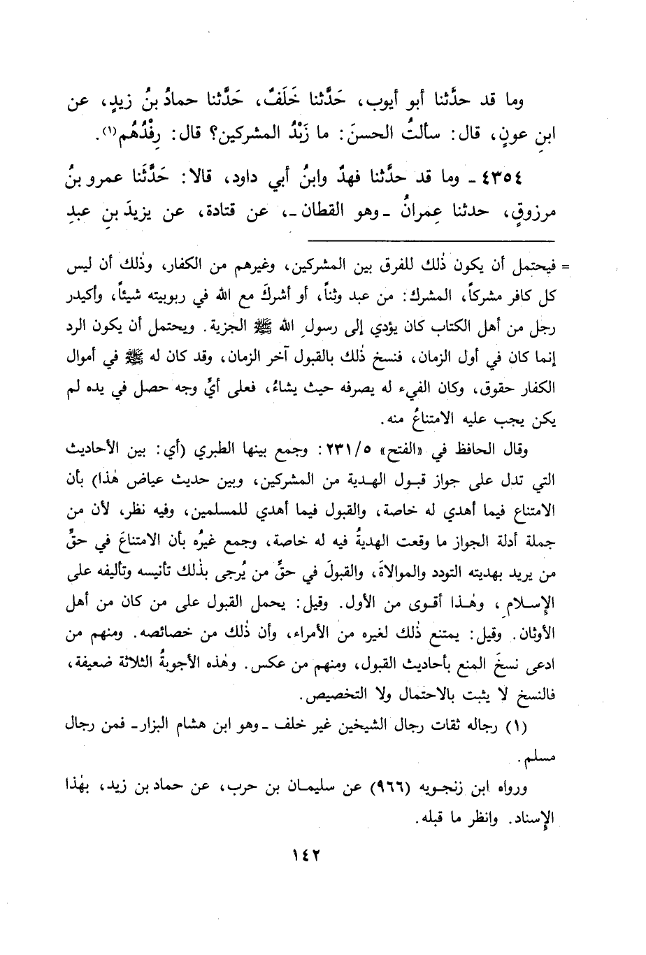 4354 - وَمَا قَدْ حَدَّثَنَا فَهْدٌ، وَابْنُ أَبِي دَاوُدَ، قَالَا: حَدَّثَنَا عَمْرُو بْنُ مَرْزُوقٍ، حَدَّثَنَا عِمْرَانُ وَهُوَ الْقَطَّانُ، عَنْ قَتَادَةَ، عَنْ يَزِيدَ بْنِ عَبْدِ -[143]- اللهِ بْنِ الشِّخِّيرِ، عَنْ عِيَاضِ بْنِ حِمَارٍ، قَالَ: أَهْدَيْتُ لِرَسُولِ اللهِ صَلَّى اللَّهُ عَلَيْهِ وَسَلَّمَ نَاقَةً أَوْ قَالَ: هَدِيَّةً، فَقَالَ لِي: " أَسْلَمْتَ؟ " فَقُلْتُ: لَا، قَالَ: " إِنِّي قَدْ نُهِيتُ عَنْ زَبْدِ الْمُشْرِكِينَ "