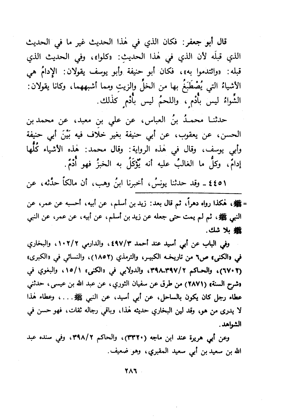 4451 - وَقَدْ حَدَّثَنَا يُونُسُ، أَخْبَرَنَا ابْنُ وَهْبٍ، أَنَّ مَالِكًا، حَدَّثَهُ، عَنْ -[287]- رَبِيعَةَ بْنِ أَبِي عَبْدِ الرَّحْمَنِ، عَنِ الْقَاسِمِ بْنِ مُحَمَّدٍ، عَنْ عَائِشَةَ، رَضِيَ اللهُ عَنْهَا قَالَتْ: دَخَلَ رَسُولُ اللهِ صَلَّى اللَّهُ عَلَيْهِ وَسَلَّمَ وَالْبُرْمَةُ تَفُورُ بِلَحْمٍ وَأُدْمٍ مِنْ أُدْمِ الْبَيْتِ، فَقَالَ رَسُولُ اللهِ صَلَّى اللَّهُ عَلَيْهِ وَسَلَّمَ: " أَلَمْ أَرَ بُرْمَةً فِيهَا لَحْمٌ؟ " قَالُوا: بَلَى يَا رَسُولَ اللهِ، وَلَكِنَّ ذَاكَ لَحْمٌ تُصُدِّقَ بِهِ عَلَى بَرِيرَةَ، وَأَنْتَ لَا تَأْكُلُ الصَّدَقَةَ، فَقَالَ رَسُولُ اللهِ صَلَّى اللَّهُ عَلَيْهِ وَسَلَّمَ: " هُوَ عَلَيْهَا صَدَقَةٌ، وَهُوَ لَنَا هَدِيَّةٌ " فَكَانَ فِي هَذَا الْحَدِيثِ أَنَّ تِلْكَ الْبُرْمَةَ الْمَذْكُورَةَ فِيهِ كَانَتْ تَفُورُ بِلَحْمٍ وَأُدْمٍ مِنْ أُدْمِ الْبَيْتِ، فَكَانَ الَّذِي يَقَعُ فِي الْقُلُوبِ أَنَّ ذَلِكَ الْأُدْمَ مِمَّا يُرَى فِي الْبُرْمَةِ كَمَا يُرَى اللَّحْمُ الَّذِي فِيهَا، وَذَلِكَ غَيْرُ الزَّيْتِ وَمَا أَشْبَهَهُ مِمَّا لَا يَبْقَى فِي مِثْلِهَا كَبَقَاءِ اللَّحْمِ فِيهَا.