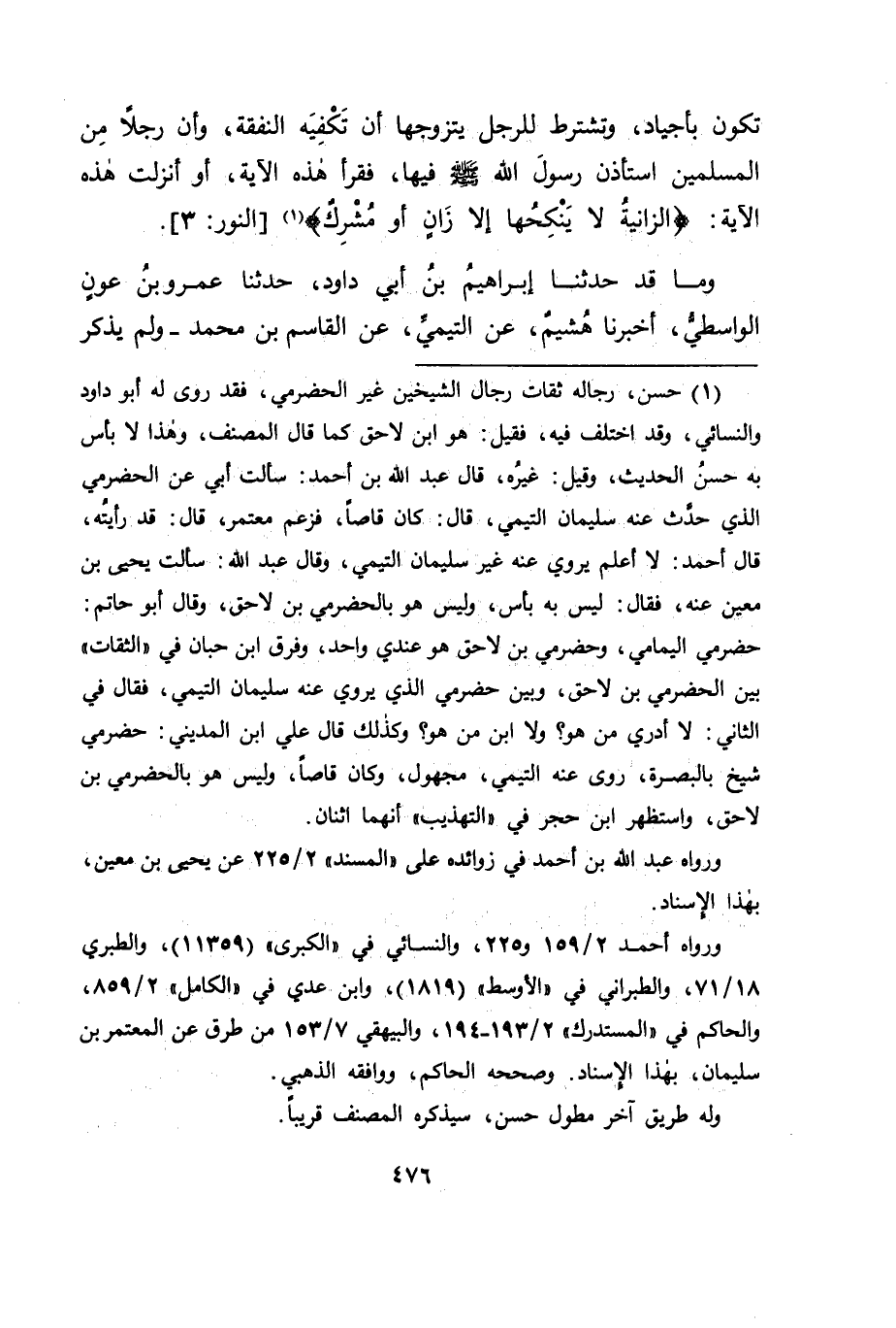 وَمَا قَدْ حَدَّثَنَا إِبْرَاهِيمُ بْنُ أَبِي دَاوُدَ، حَدَّثَنَا عَمْرُو بْنُ عَوْنٍ الْوَاسِطِيُّ، أَخْبَرَنَا هُشَيْمٌ، عَنِ التَّيْمِيِّ، عَنِ الْقَاسِمِ بْنِ مُحَمَّدٍ وَلَمْ يُذْكَرْ -[477]- بَيْنَهُمَا الْحَضْرَمِيُّ، عَنْ عَبْدِ اللهِ بْنِ عُمَرَ، وَلَمْ يَقُلِ: ابْنُ عَمْرٍو، قَالَ: " كُنَّ نِسَاءٌ بَغَايَا مَعْلُومَاتٌ، كَانَ الرَّجُلُ يَتَزَوَّجُ الْمَرْأَةَ مِنْهُنَّ لِتُنْفِقَ عَلَيْهِ مِنْهُنَّ أُمُّ مَهْزُولٍ "