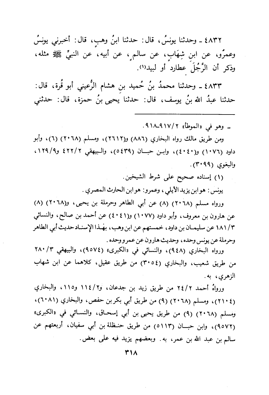 4834 - وَحَدَّثَنَا أَحْمَدُ بْنُ شُعَيْبٍ قَالَ: أَخْبَرَنِي شُعَيْبُ بْنُ شُعَيْبٍ يَعْنِي ابْنَ إِسْحَاقَ الدِّمَشْقِيَّ قَالَ: حَدَّثَنَا عَبْدُ الْوَهَّابِ بْنُ سَعِيدٍ قَالَ: حَدَّثَنَا شُعَيْبٌ يَعْنِي ابْنَ إِسْحَاقَ قَالَ: حَدَّثَنَا الْأَوْزَاعِيُّ قَالَ: حَدَّثَنِي يَحْيَى بْنُ أَبِي كَثِيرٍ قَالَ: حَدَّثَنِي أَبُو شَيْخٍ قَالَ: حَدَّثَنِي حِمَّانُ هَكَذَا قَالَ قَالَ: حَجَّ مُعَاوِيَةُ، ثُمَّ ذَكَرَ مِثْلَهُ -[320]-