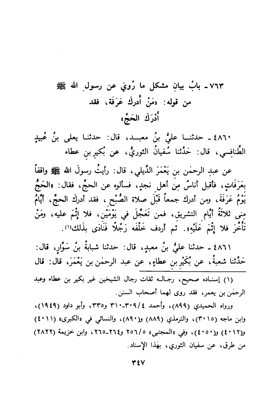 بَابُ بَيَانِ مُشْكِلِ مَا رُوِيَ عَنْ رَسُولِ اللهِ صَلَّى اللَّهُ عَلَيْهِ وَسَلَّمَ مِنْ قَوْلِهِ: " مَنْ أَدْرَكَ عَرَفَةَ، فَقَدْ أَدْرَكَ الْحَجَّ "