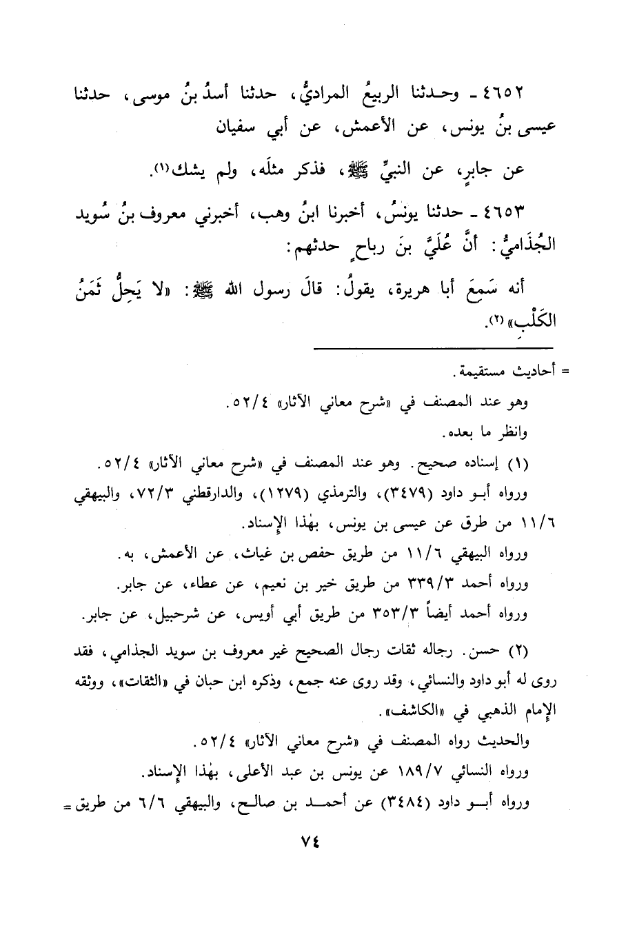 4653 - حَدَّثَنَا يُونُسُ , أَخْبَرَنَا ابْنُ وَهْبٍ , أَخْبَرَنِي مَعْرُوفُ بْنُ سُوَيْدٍ الْجُذَامِيُّ: أَنَّ عَلِيَّ بْنَ رَبَاحٍ، حَدَّثَهُمْ: أَنَّهُ، سَمِعَ أَبَا هُرَيْرَةَ يَقُولُ: قَالَ رَسُولُ اللهِ صَلَّى اللَّهُ عَلَيْهِ وَسَلَّمَ: " لَا يَحِلُّ ثَمَنُ الْكَلْبِ "