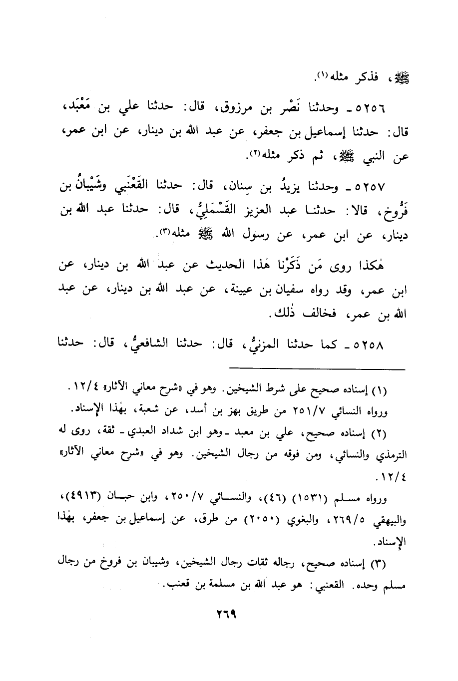 5258 - كَمَا حَدَّثَنَا الْمُزَنِيُّ قَالَ: حَدَّثَنَا الشَّافِعِيُّ قَالَ: حَدَّثَنَا -[270]- سُفْيَانُ، عَنْ عَبْدِ اللهِ بْنِ دِينَارٍ، أَنَّهُ سَمِعَ عَبْدَ اللهِ بْنَ عُمَرَ يَقُولُ: سَمِعْتُ رَسُولَ اللهِ صَلَّى اللَّهُ عَلَيْهِ وَسَلَّمَ يَقُولُ: " الْبَيِّعَانِ كُلُّ وَاحِدٍ مِنْهُمَا بِالْخِيَارِ عَلَى صَاحِبِهِ مَا لَمْ يَتَفَرَّقَا، أَوْ يَكُونُ بَيْعُهُمَا عَنْ خِيَارٍ، فَإِذَا كَانَ الْبَيْعُ عَنْ خِيَارٍ، فَقَدْ وَجَبَ " فَعَادَ مَعْنَى مَا قَدْ رُوِيَ عَنْ عَبْدِ اللهِ بْنِ دِينَارٍ، عَنِ ابْنِ عُمَرَ فِي هَذَا الْمَعْنَى، مِمَّا قَدِ اخْتُلِفَ عَنْهُ فِيهِ إِلَى مَا يُوَافِقُهُ، مِمَّا قَدْ رُوِّينَاهُ قَبْلَهُ، وَكَلَامُنَا فِيهِ كَكَلَامِنَا فِي مِثْلِهِ، مِمَّا قَدْ تَقَدَّمَ، مِمَّا رُوِيَ عَنْ نَافِعٍ، عَنِ ابْنِ عُمَرَ، وَاللهَ نَسْأَلُهُ التَّوْفِيقَ