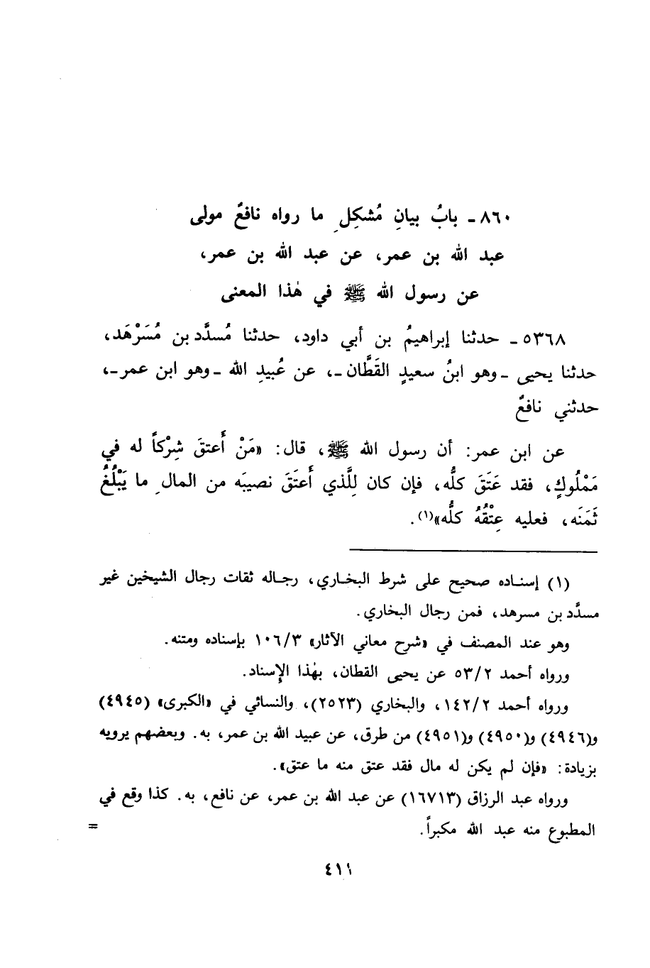 بَابُ بَيَانِ مُشْكِلِ مَا رَوَاهُ نَافِعٌ مَوْلَى عَبْدِ اللهِ بْنِ عُمَرَ، عَنْ عَبْدِ اللهِ بْنِ عُمَرَ، عَنْ رَسُولِ اللهِ صَلَّى اللَّهُ عَلَيْهِ وَسَلَّمَ فِي هَذَا الْمَعْنَى